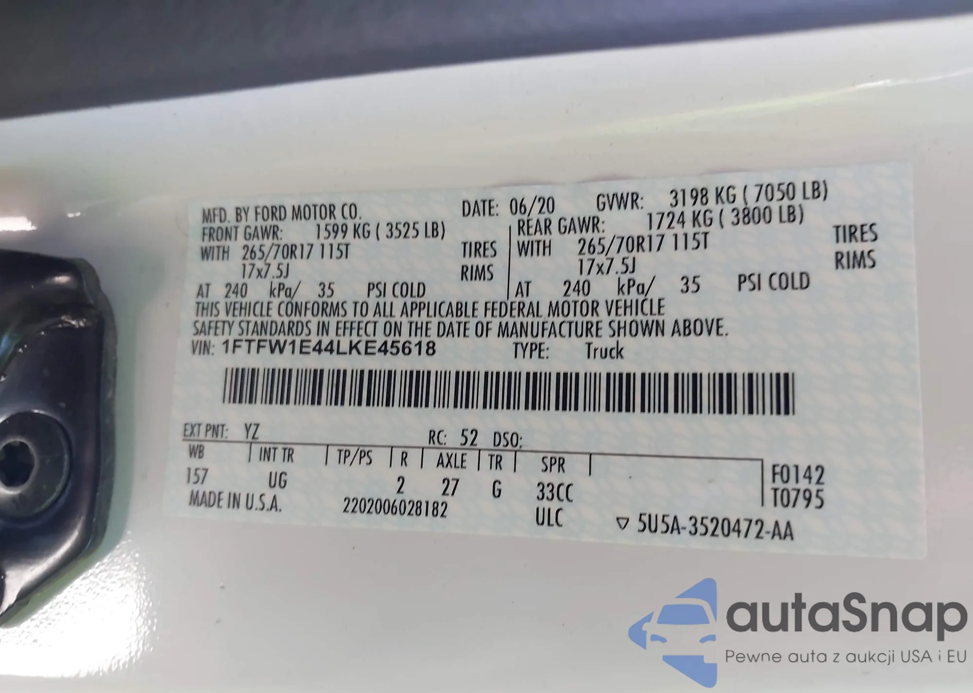 LOT: 41509795 VIN: 1FTFW1E44LKE45618