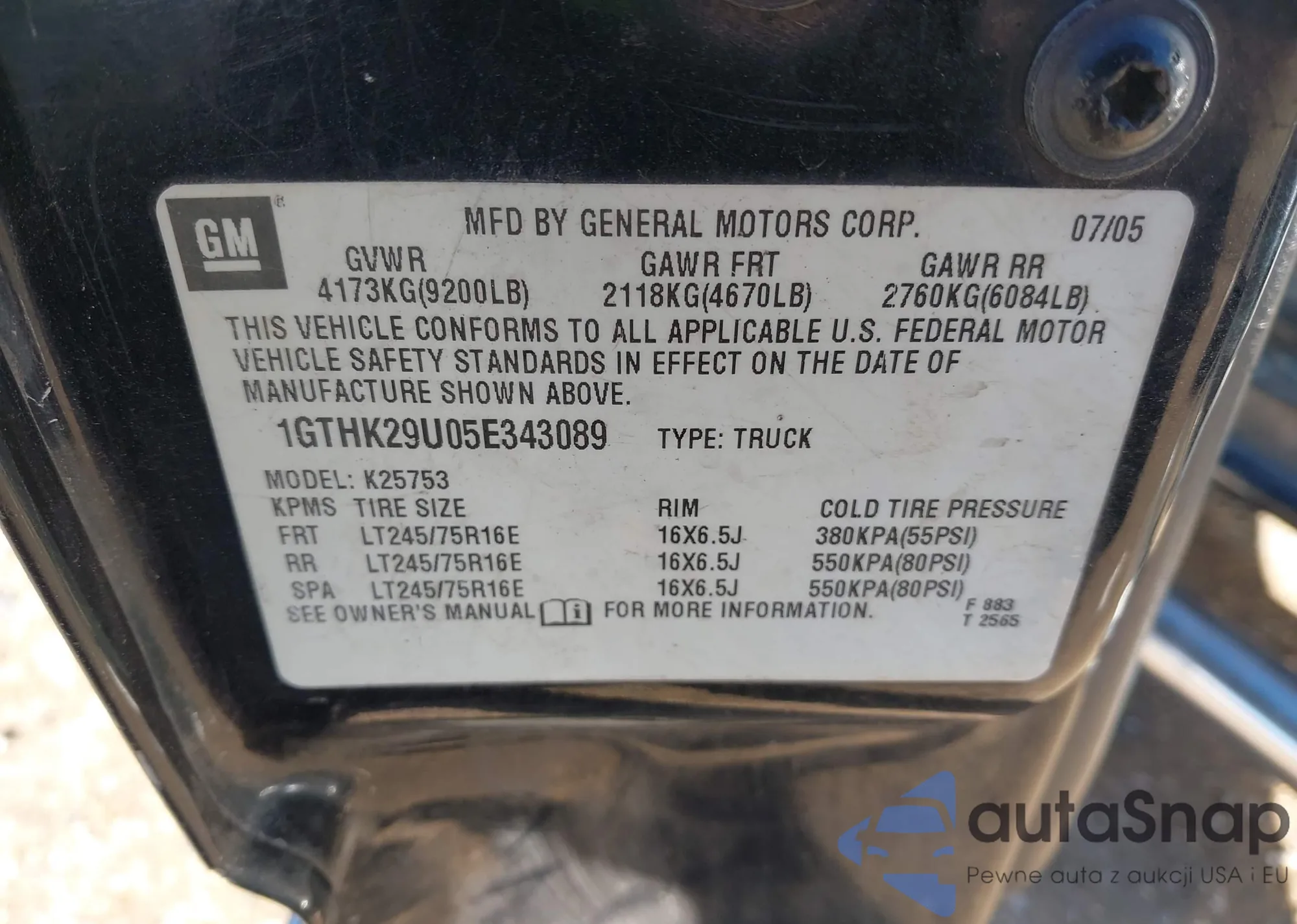 • VIN 1GTHK29U05E343089