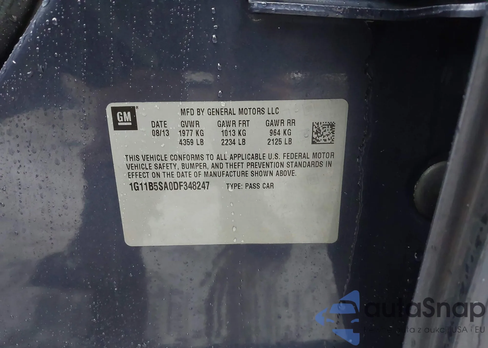 LOT: 41716790 VIN: 2G1WG5E39D1108884