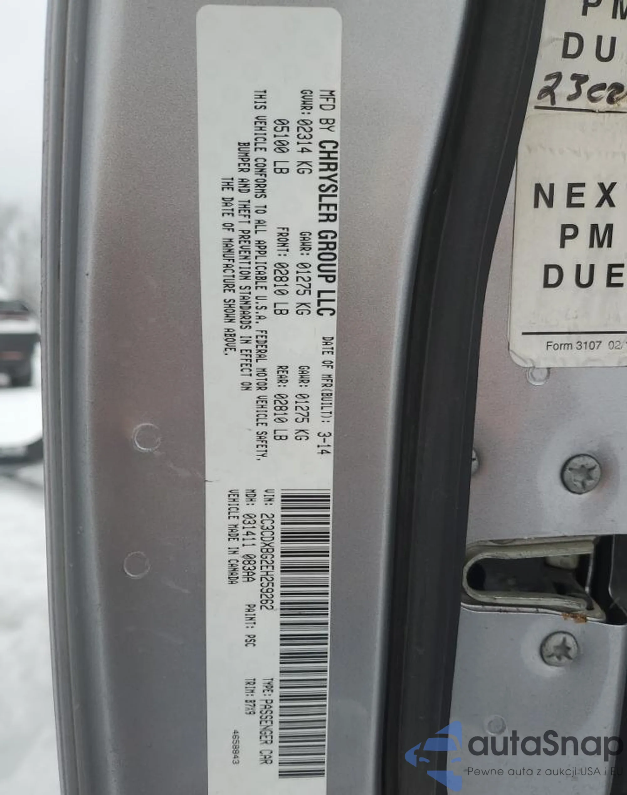 • VIN 2C3CDXBG2EH259262