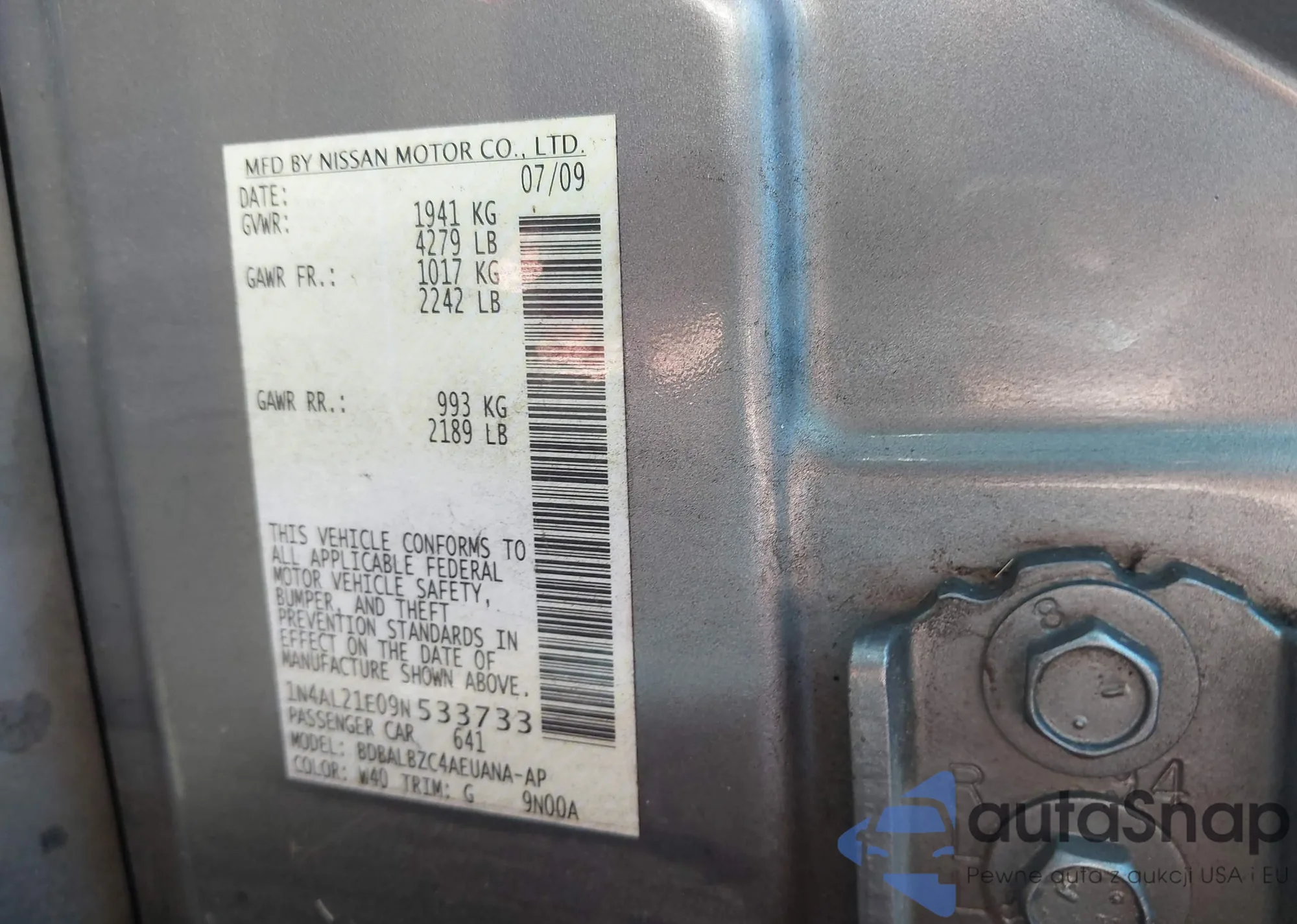 LOT: 39815378 VIN: 1N4AL21E09N533733