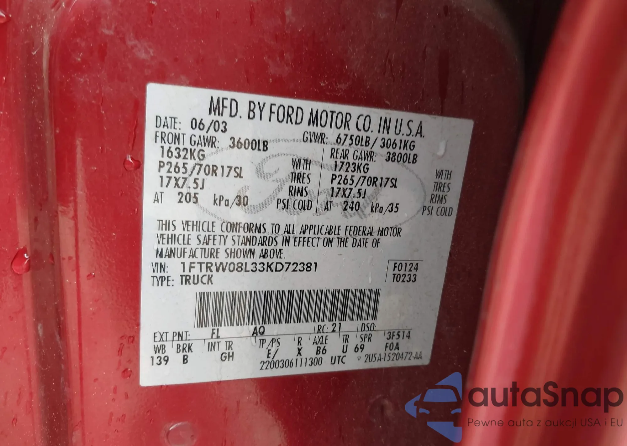 LOT: 41898308 VIN: 1FTSX21576ED57407