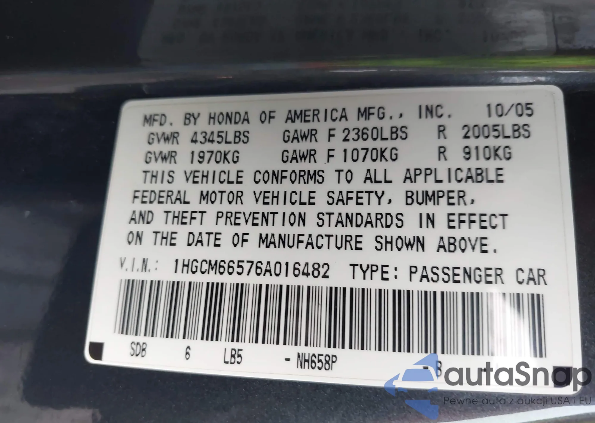 • VIN 1NXBR32E05Z437694