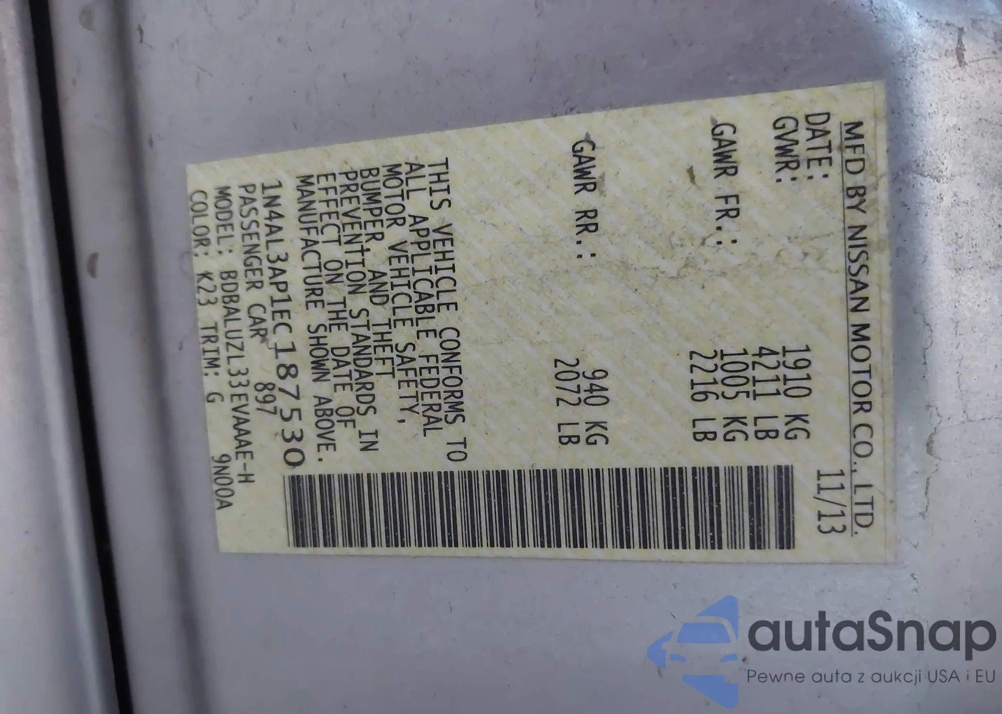 LOT: 41852300 VIN: 1N4AL3AP1EC187530