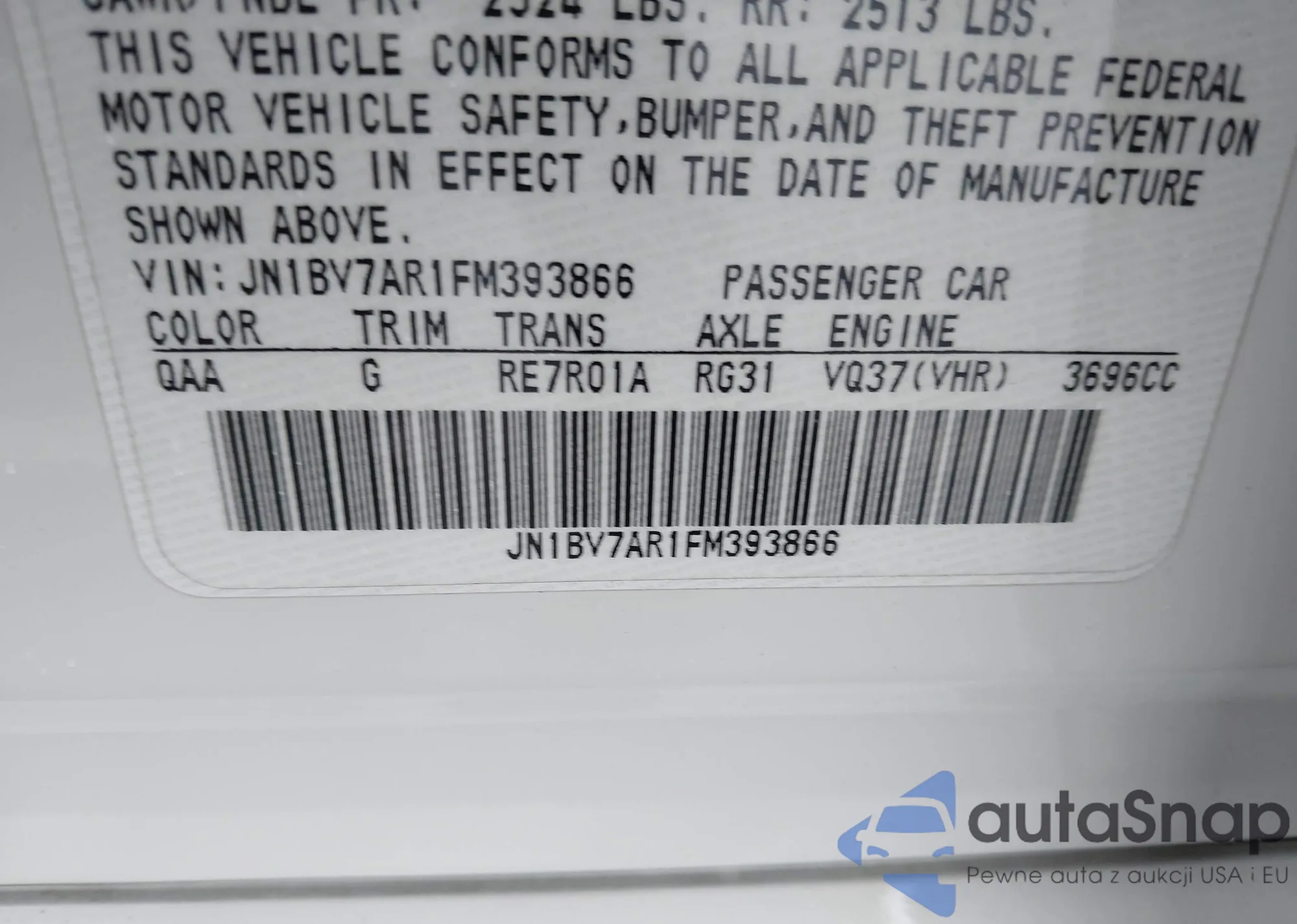 LOT: 41807059 VIN: JN1BV7AR1FM393866