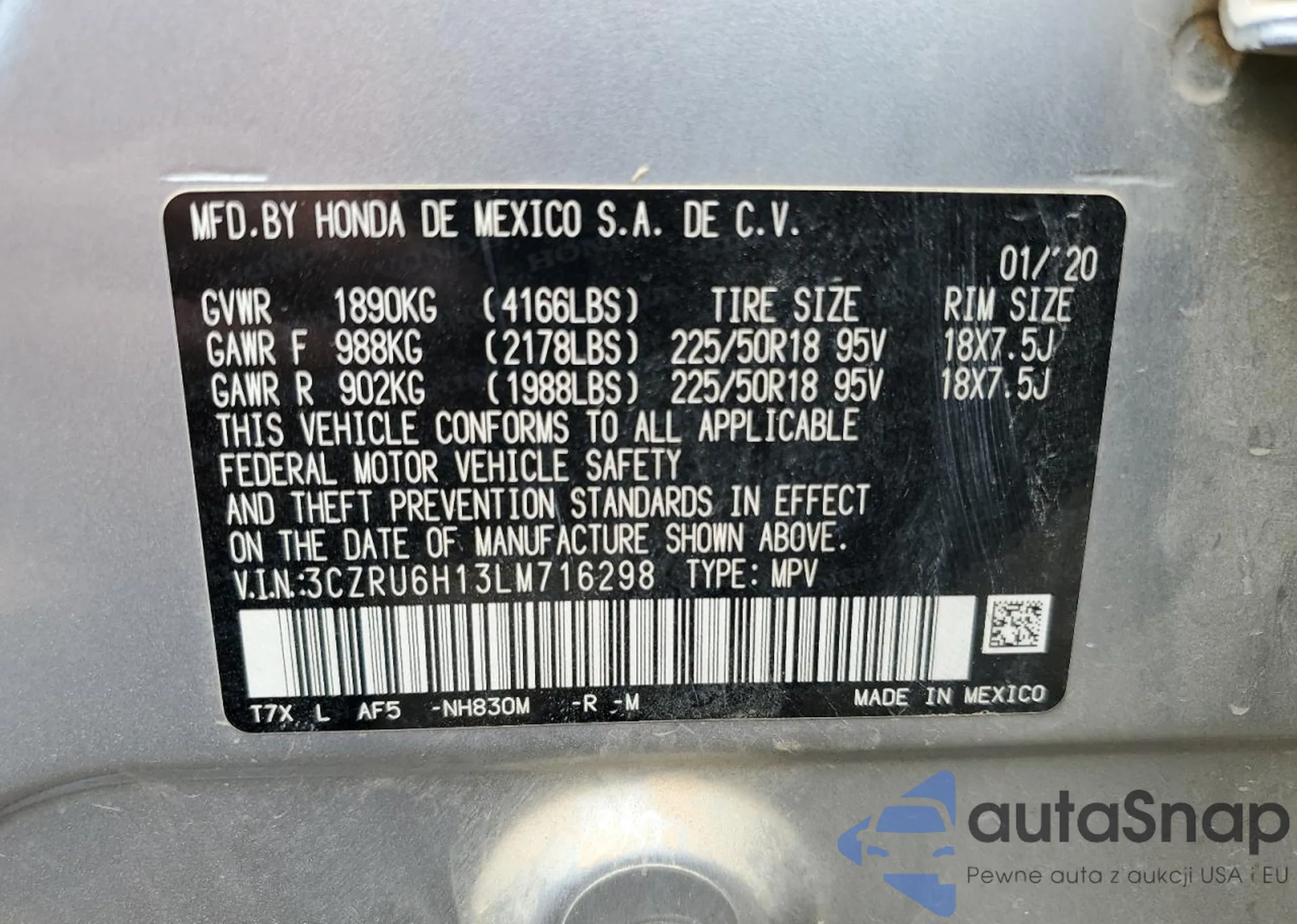 • VIN 1HGCV1F32JA154020