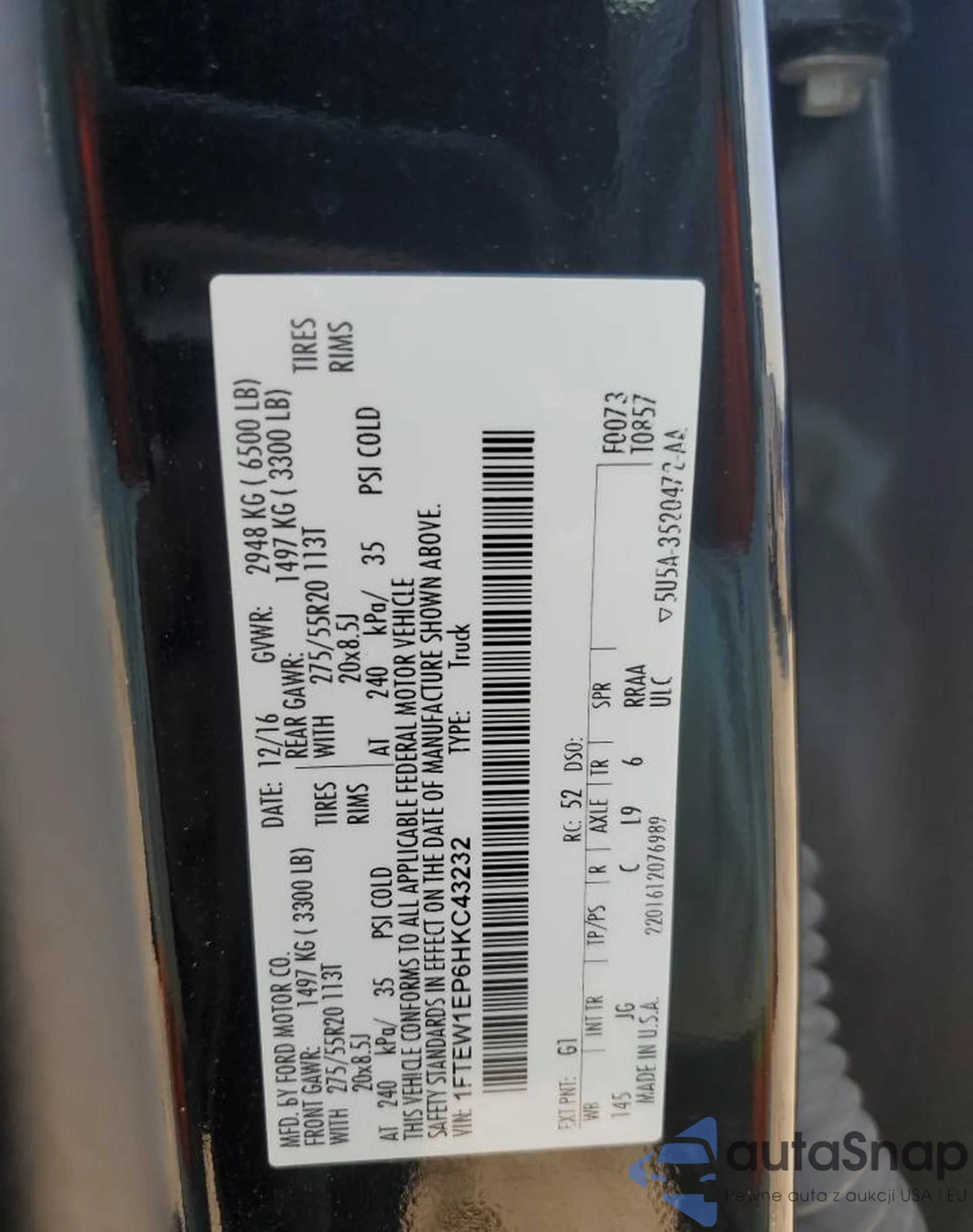 • VIN 1FTEW1EP6HKC43232