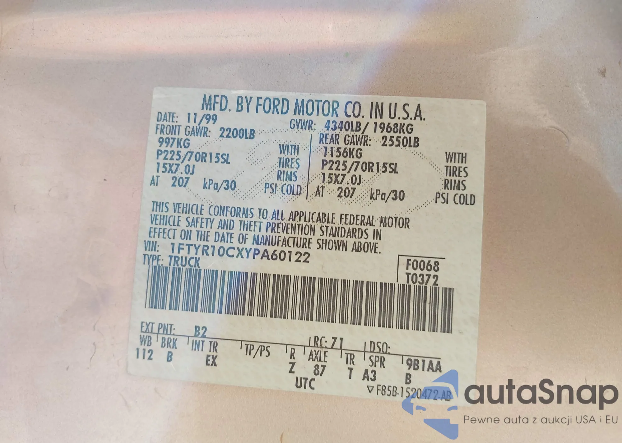 • VIN 1FTYR10CXYPA60122