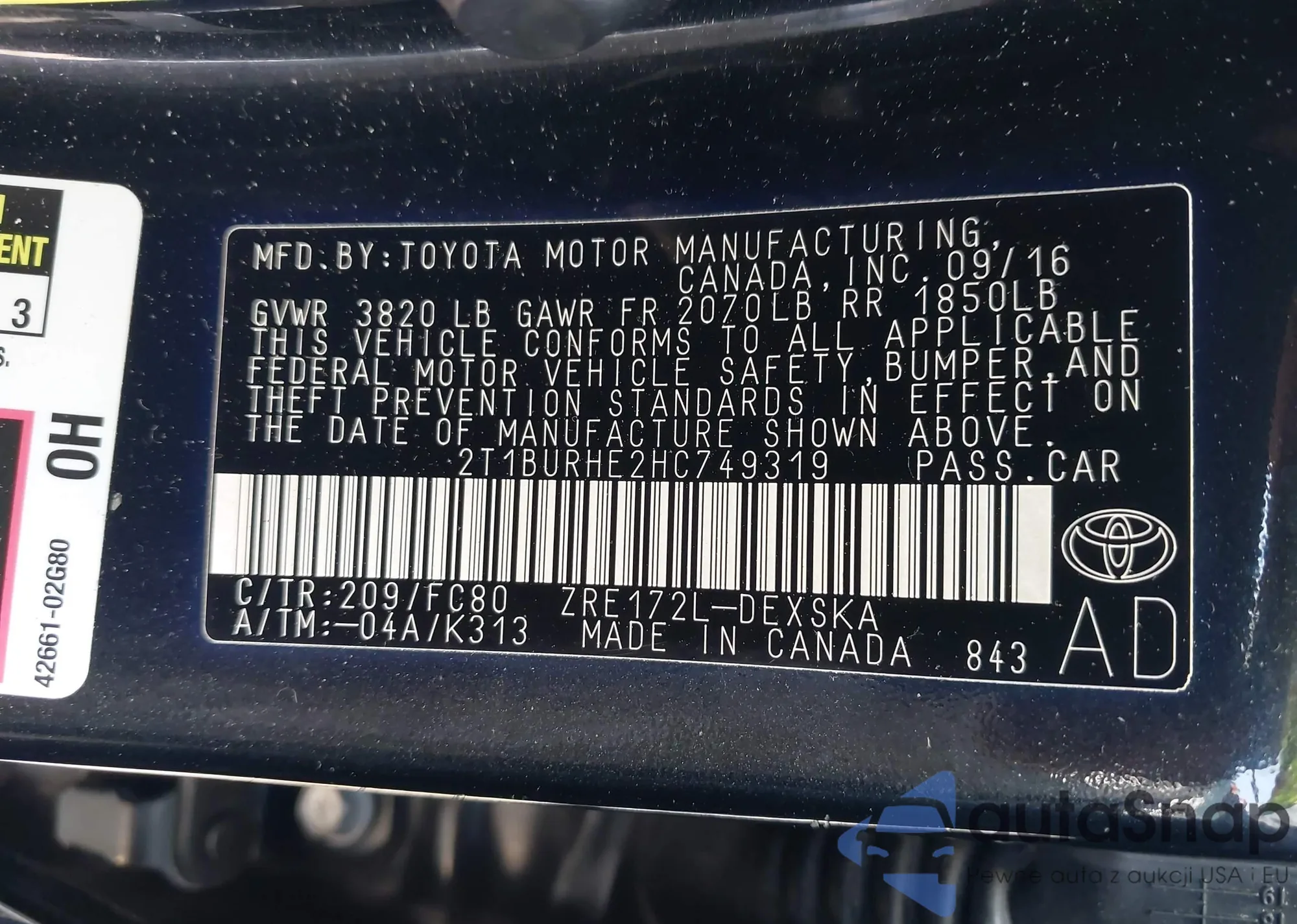 LOT: 42152504 VIN: 2T1BURHE2HC749319