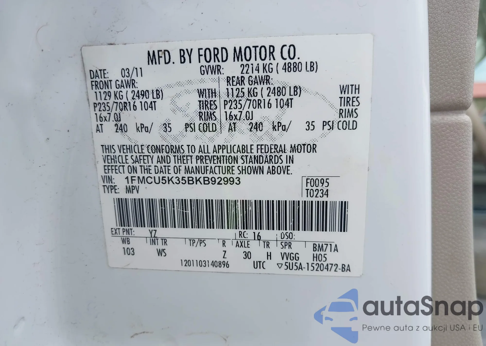 • VIN 2FMDK3JCXDBC21515