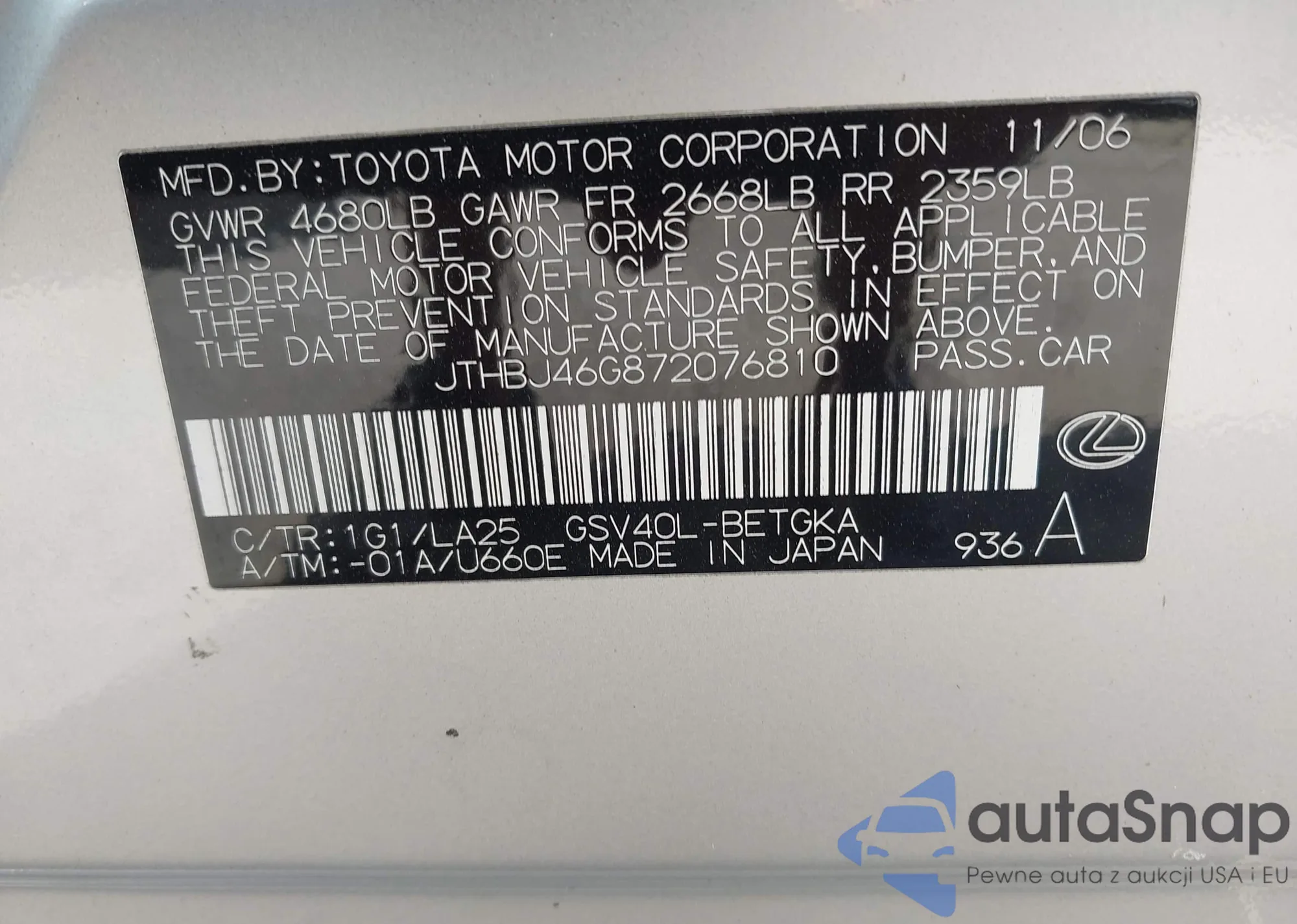 LOT: 42472915 VIN: 4T1BE32KX5U054671