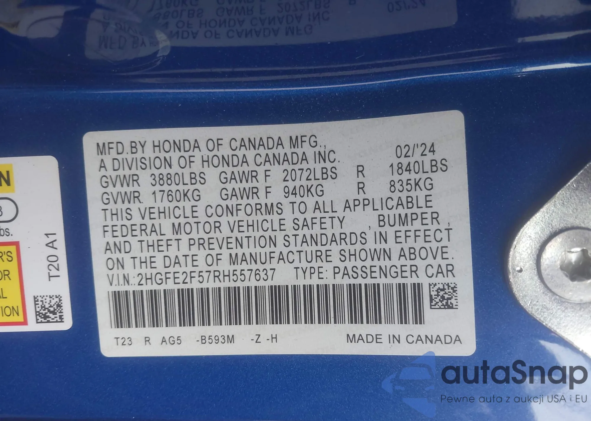 LOT: 42245882 VIN: 1HGCP26439A051709