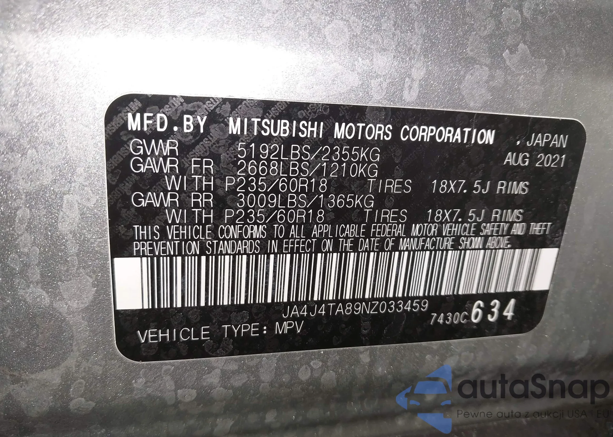 • VIN JA4J4TA89NZ033459