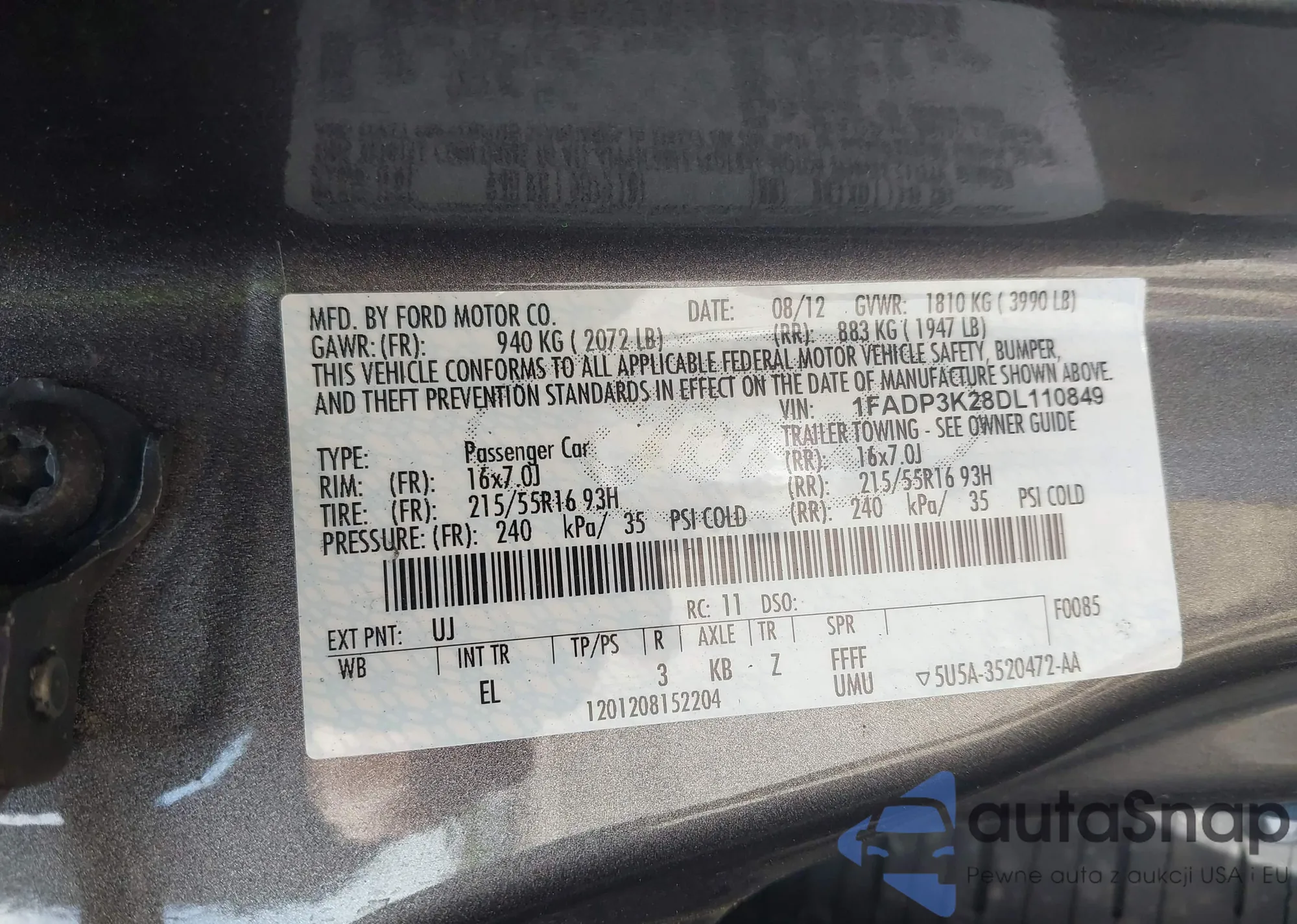 • VIN 1FADP3K28DL110849