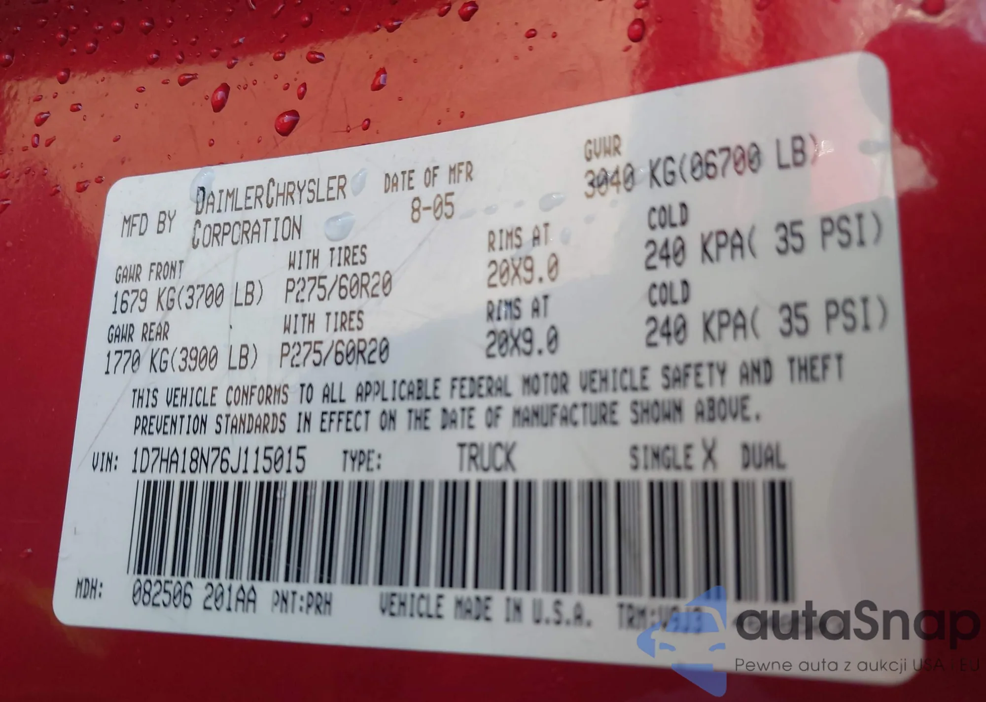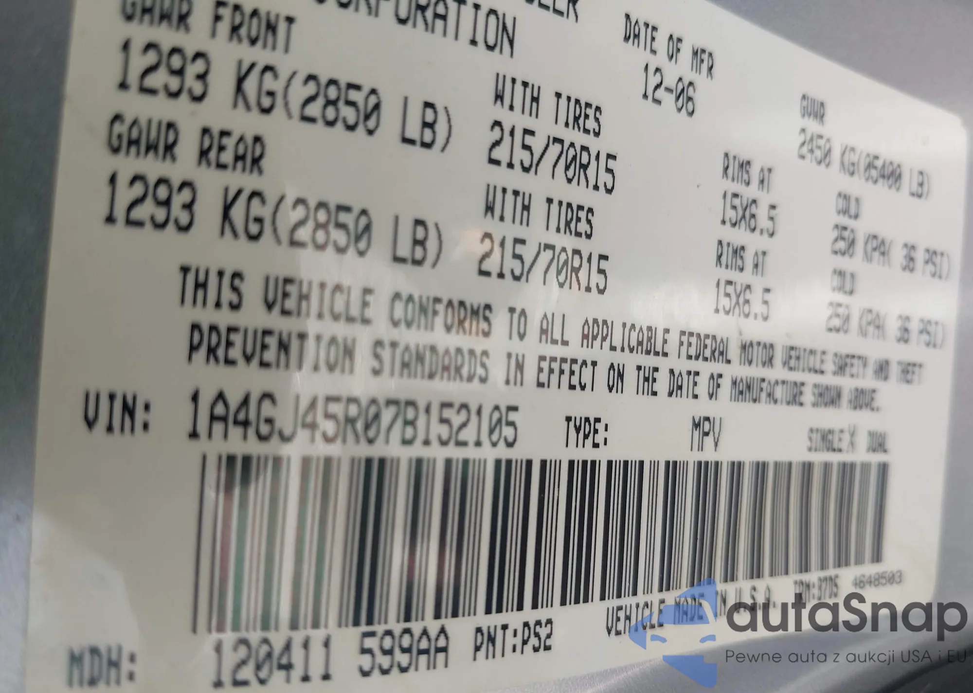 LOT: 42547701 VIN: 1A4GJ45R07B152105