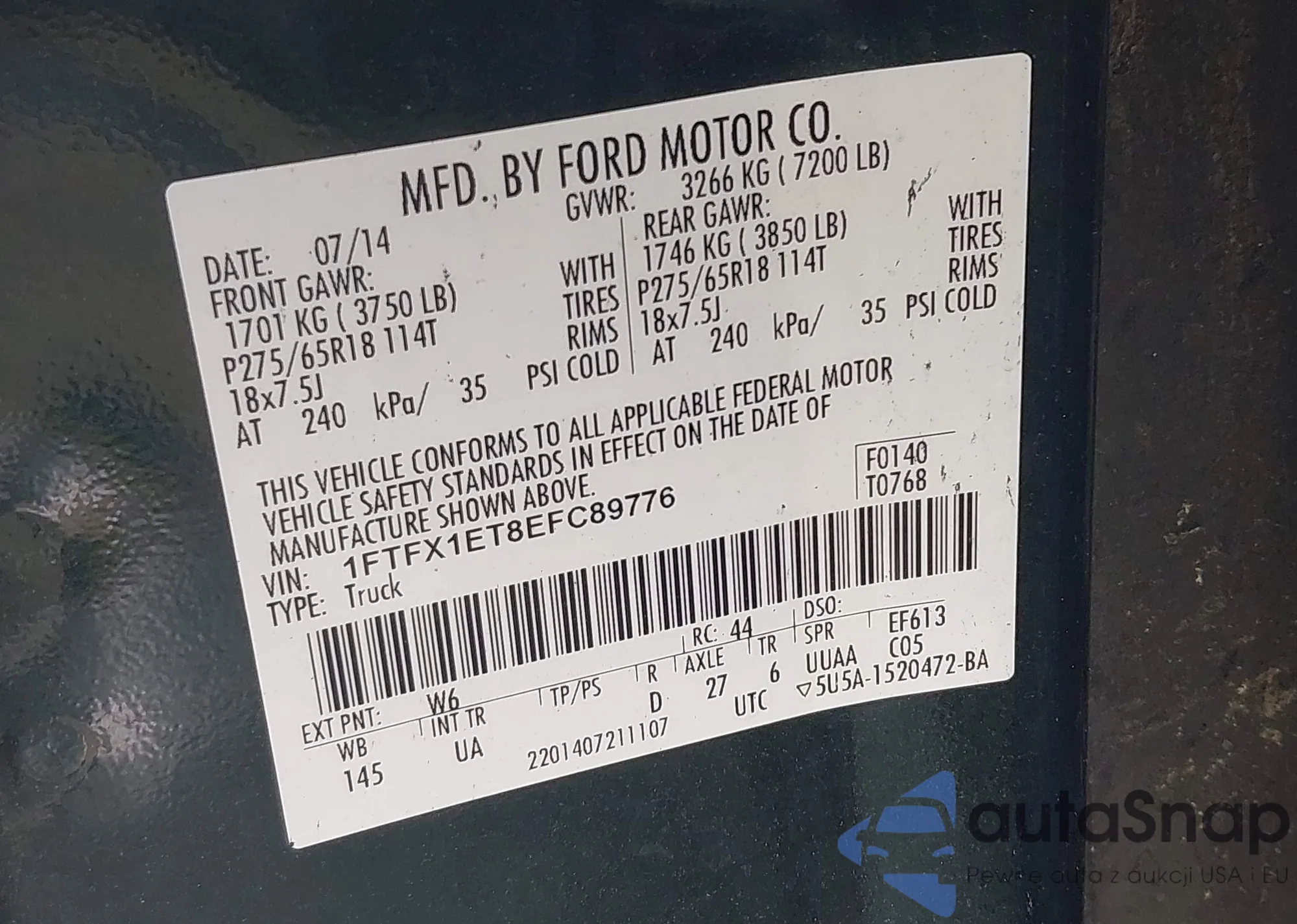 • VIN 1FTFX1ET8EFC89776