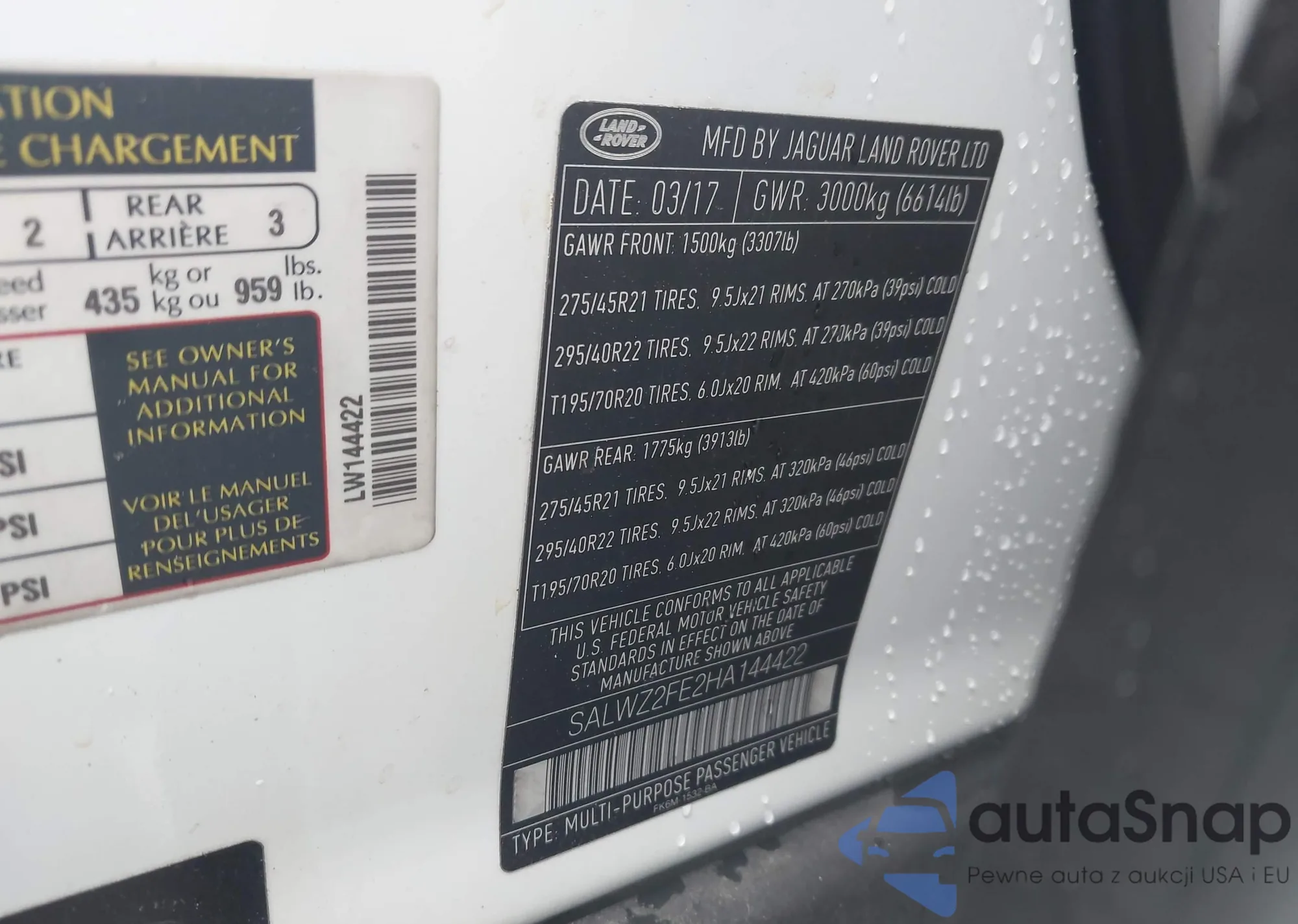• VIN SALWZ2FE2HA144422