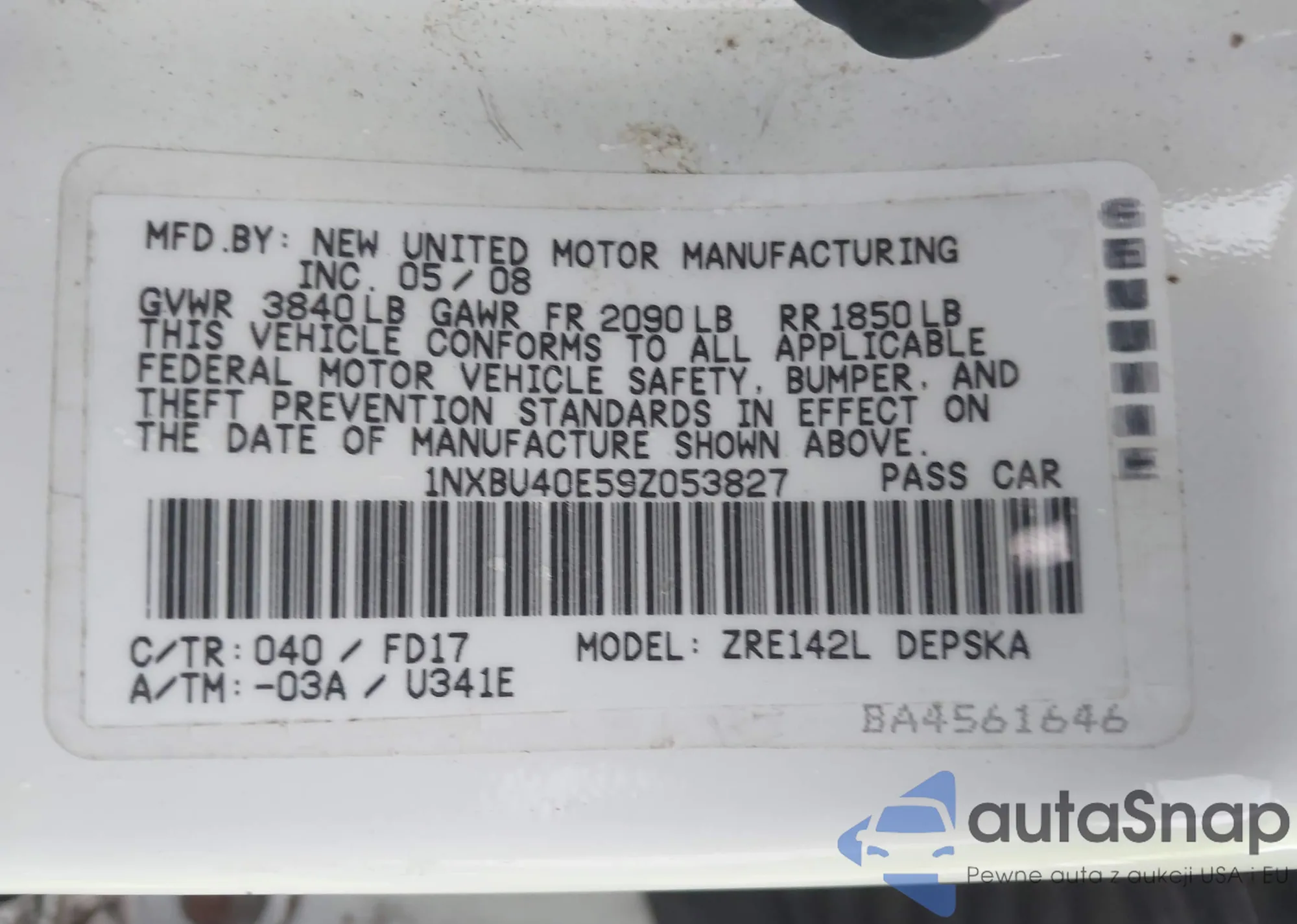 LOT: 42395144 VIN: 1NXBU40E59Z053827