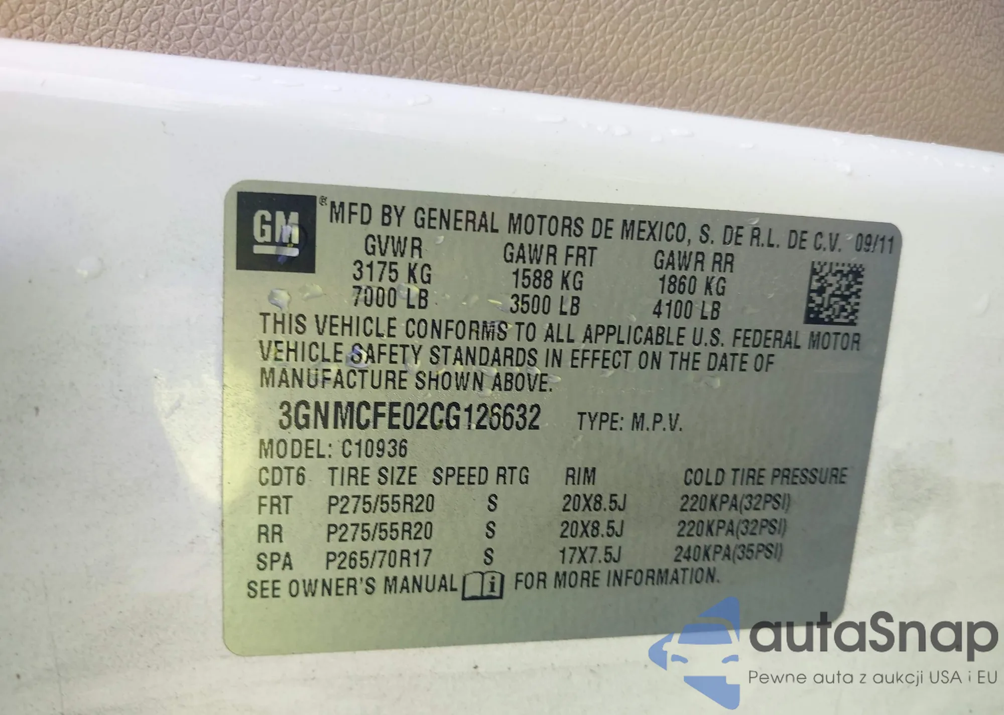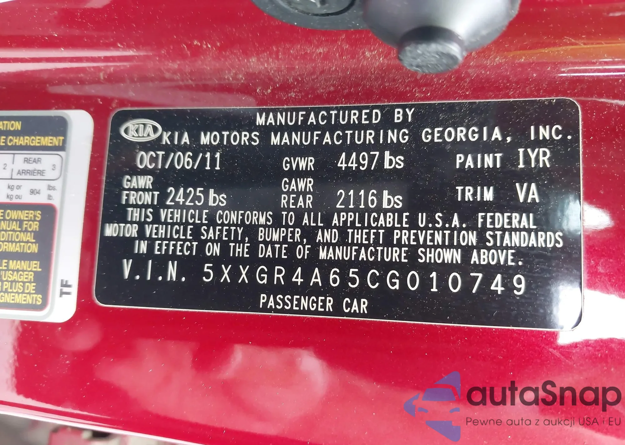 • VIN 5XXGR4A65CG010749