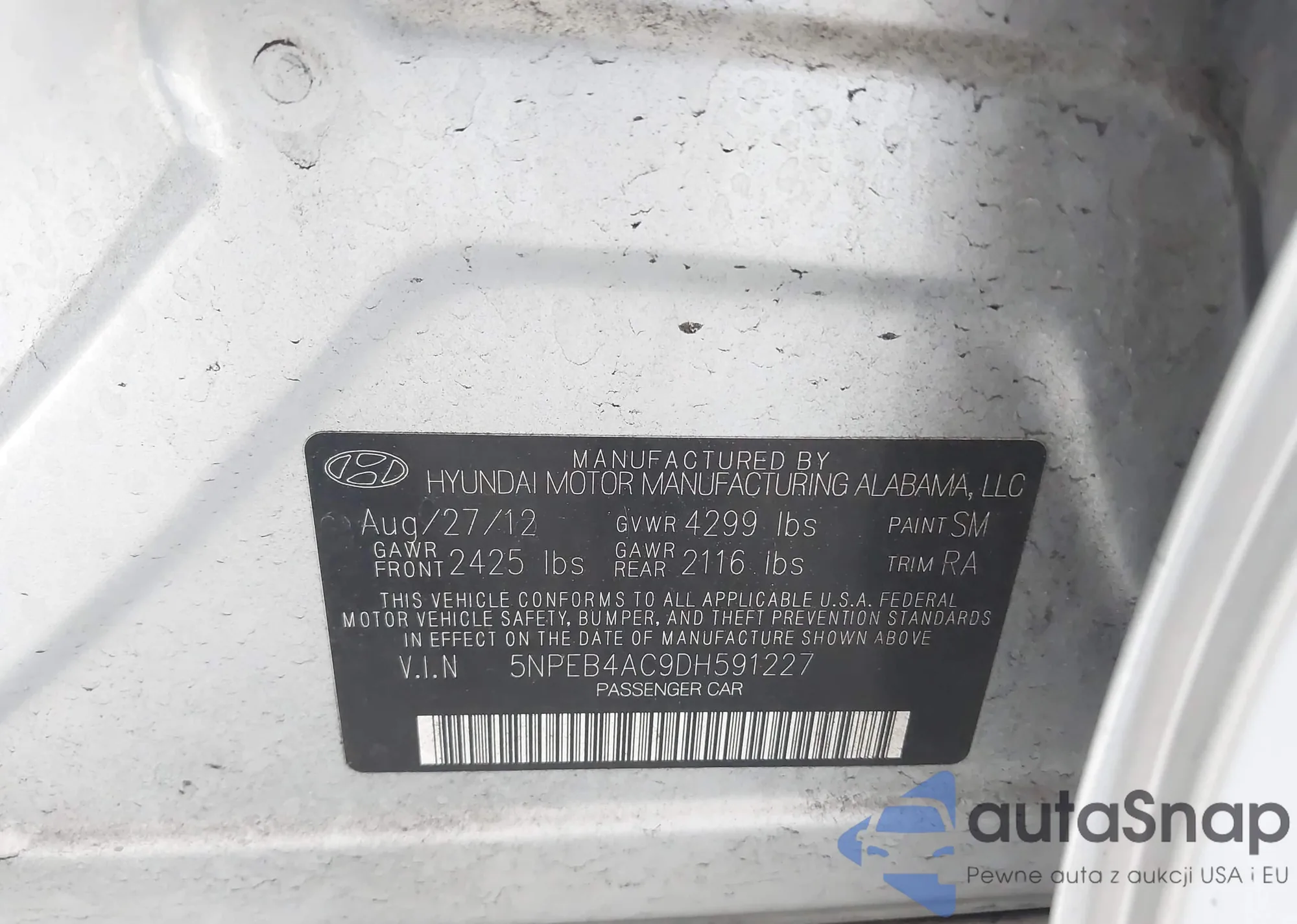 • VIN 5NPEB4AC9DH591227