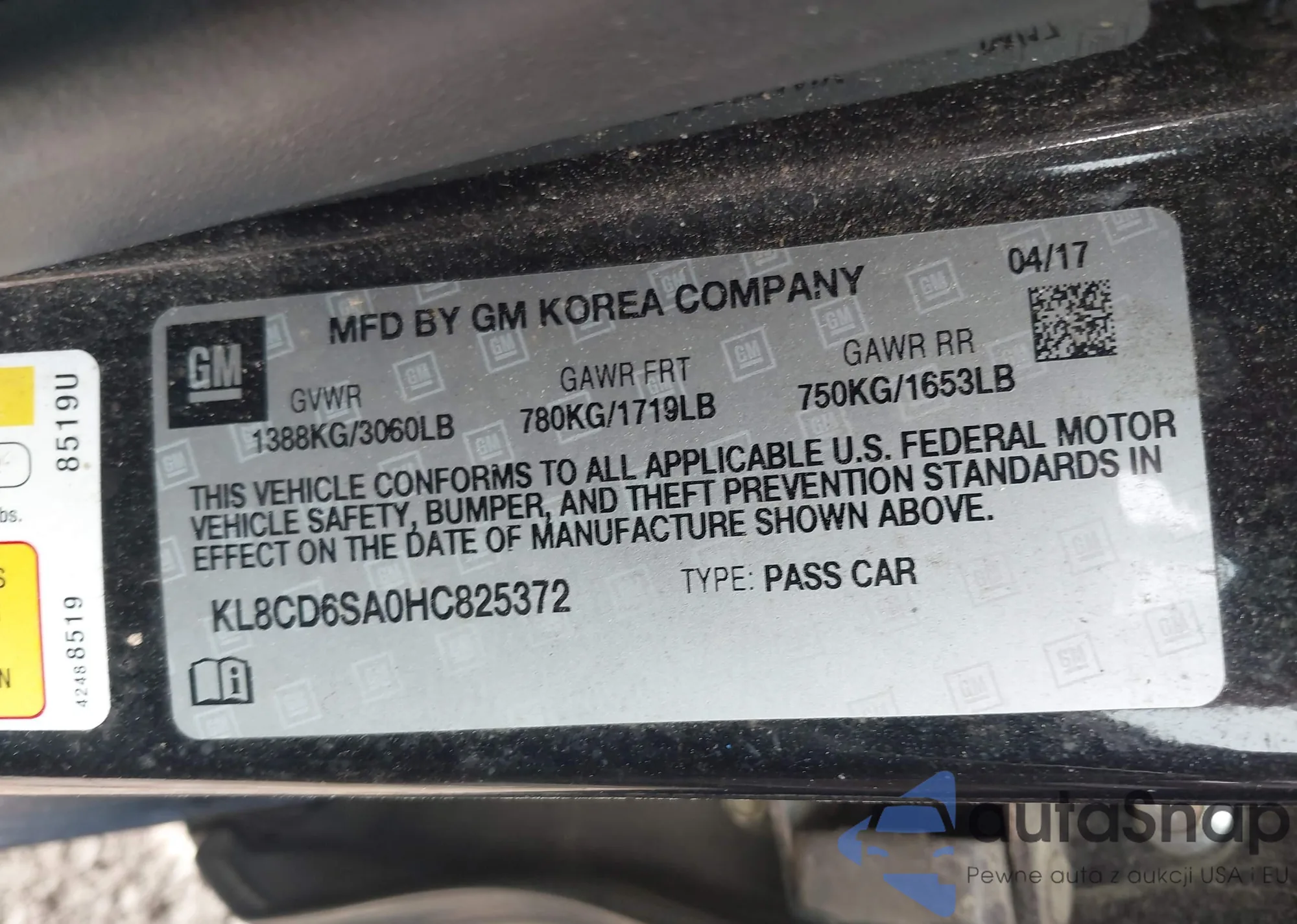 • VIN KL8CD6SA0HC825372