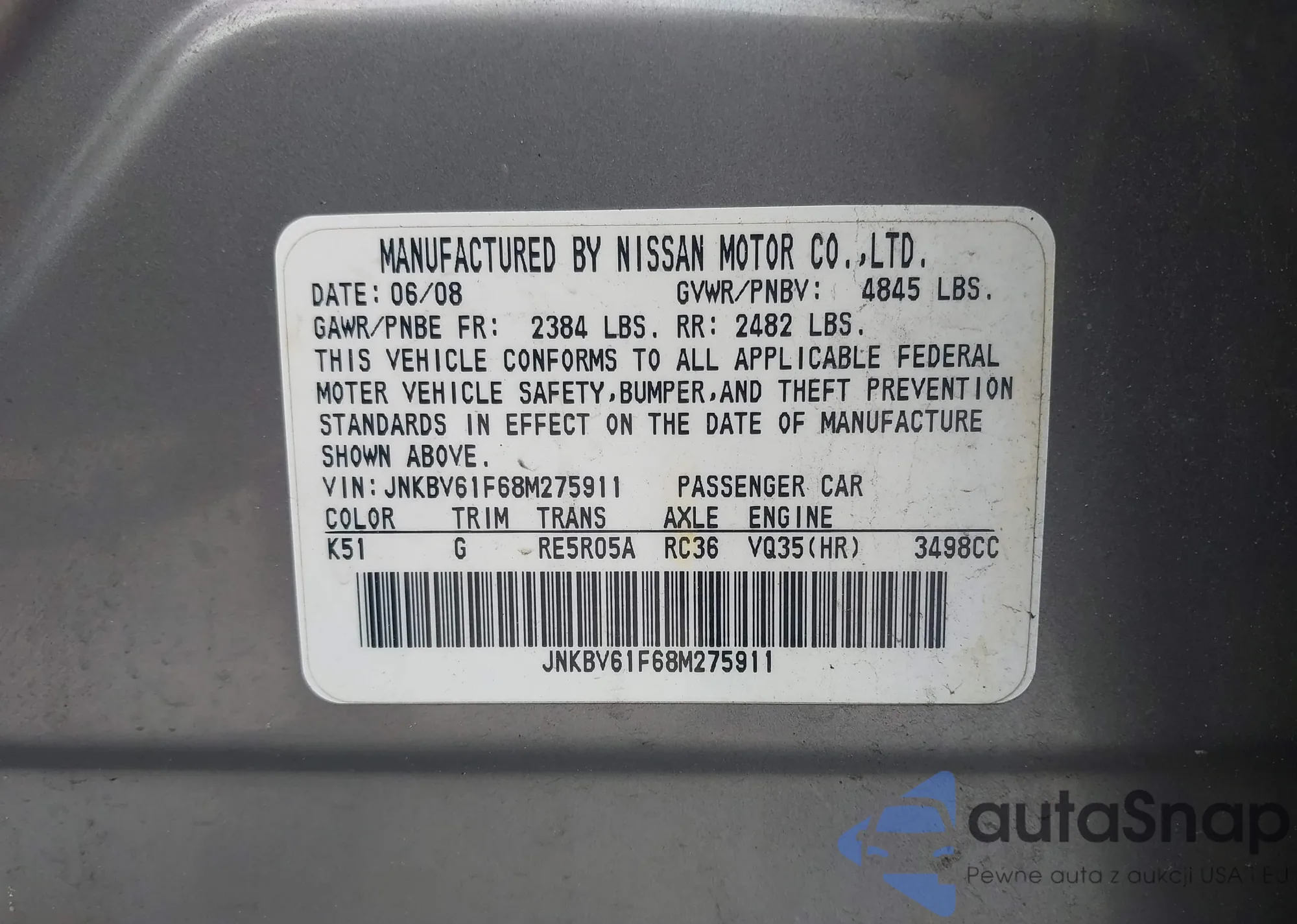 LOT: 42285863 VIN: 5NPEB4AC0DH584781