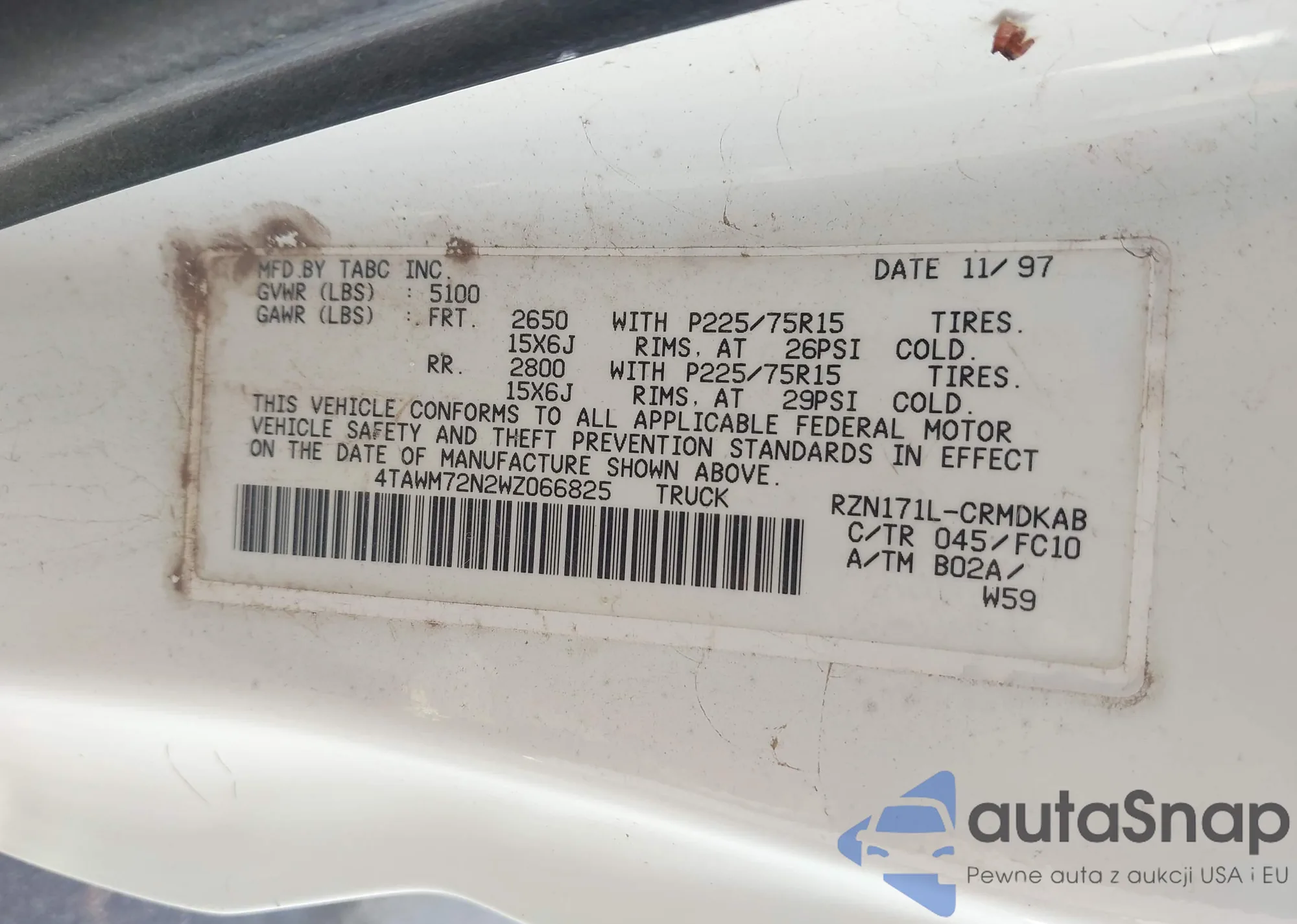 LOT: 80027765 VIN: 4TASN92N0XZ539324
