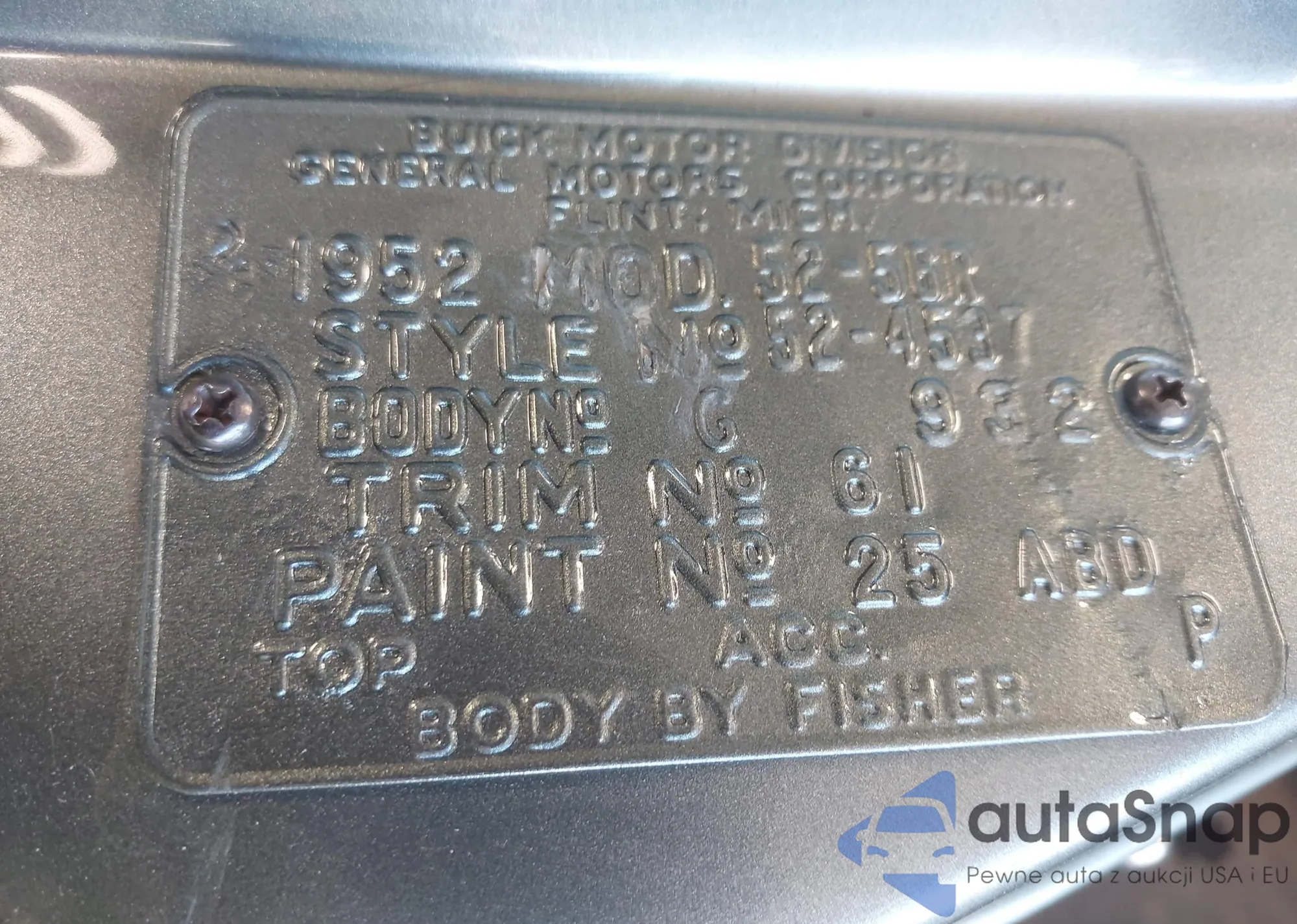 1952 Buick Riviera z USA, uszkodzony, nr VIN 16442915