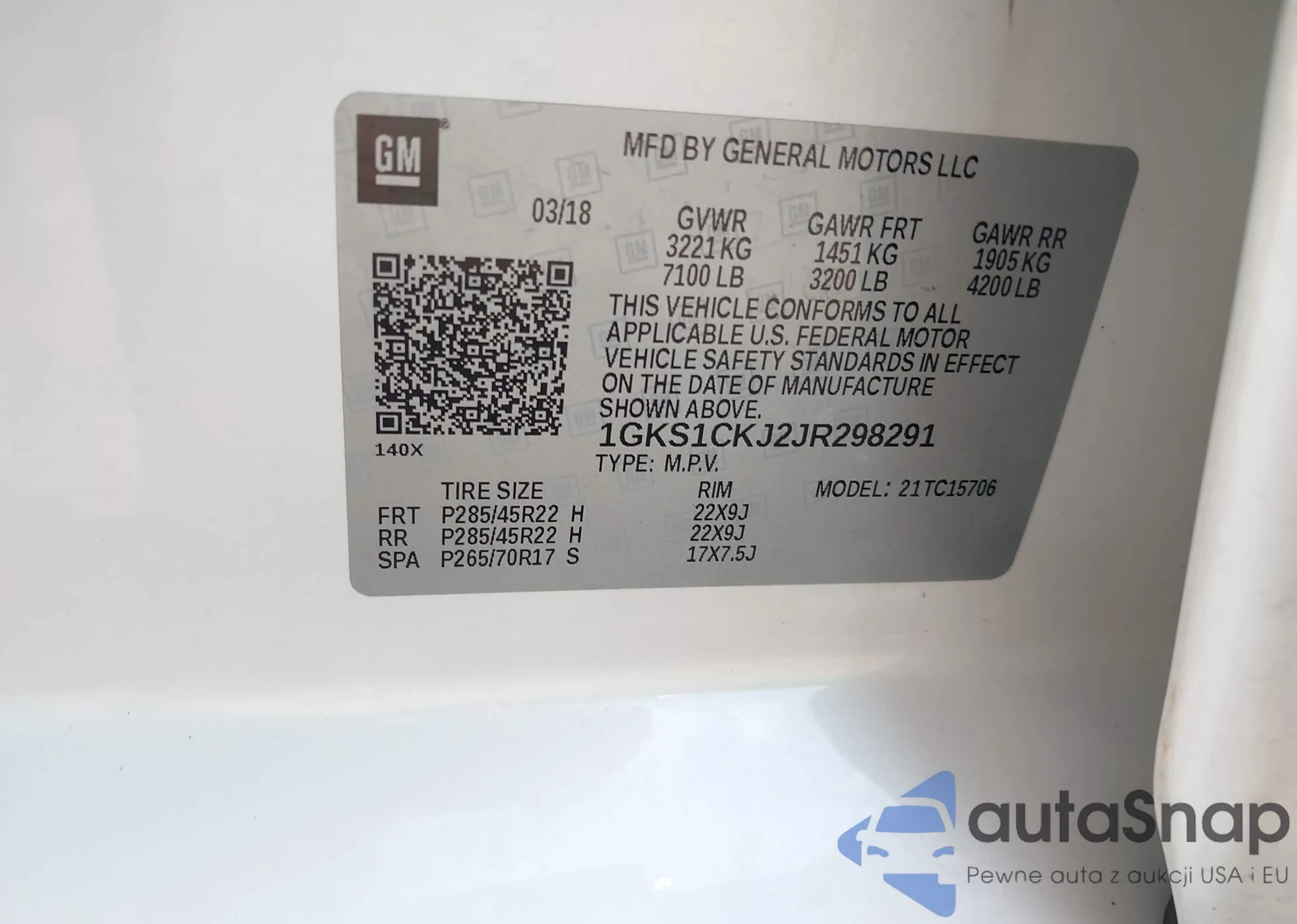 2018 GMC Yukon Denali z USA, uszkodzony, nr VIN 1GKS1CKJ2JR298291