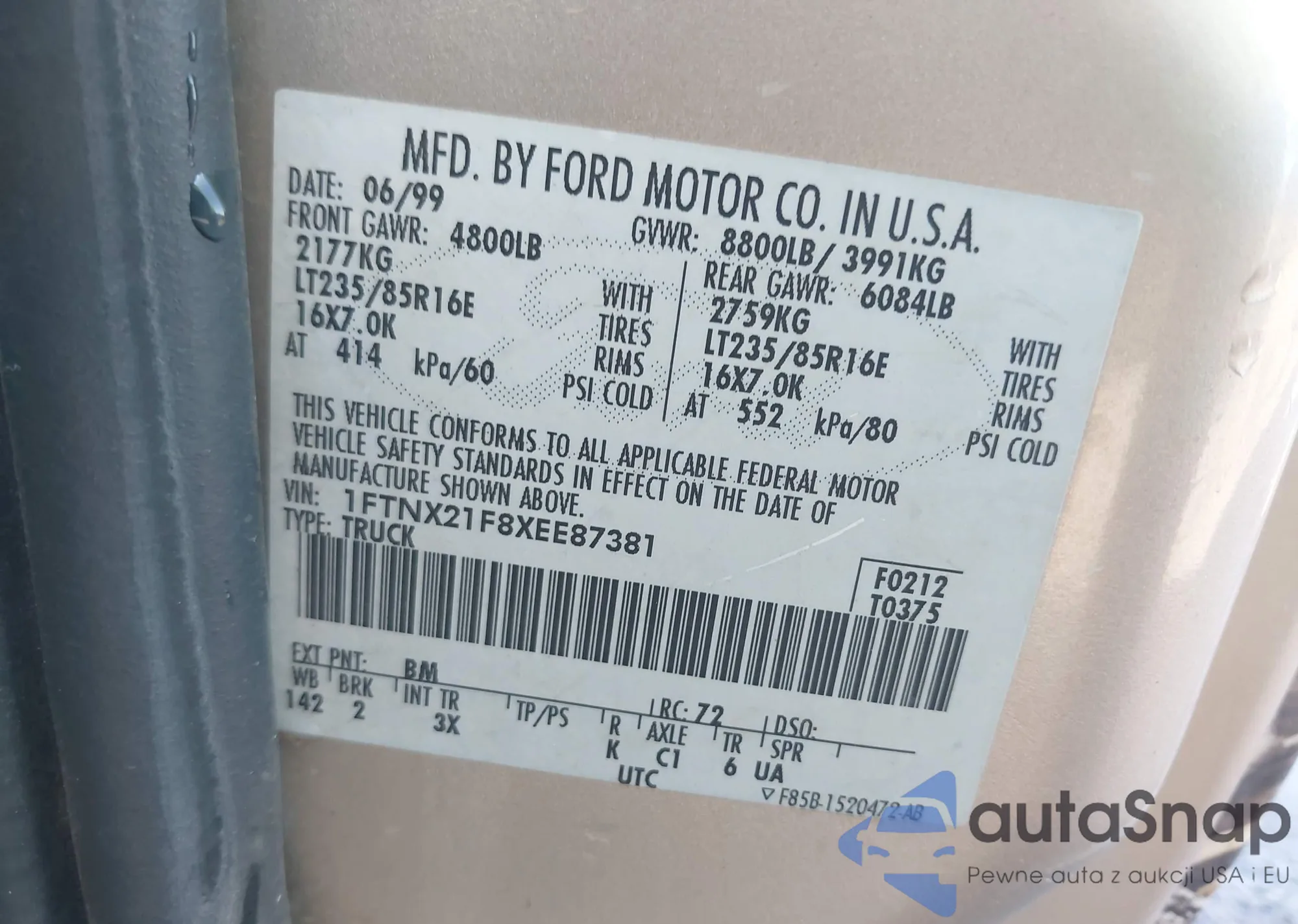 • VIN 1FTNX21F8XEE87381