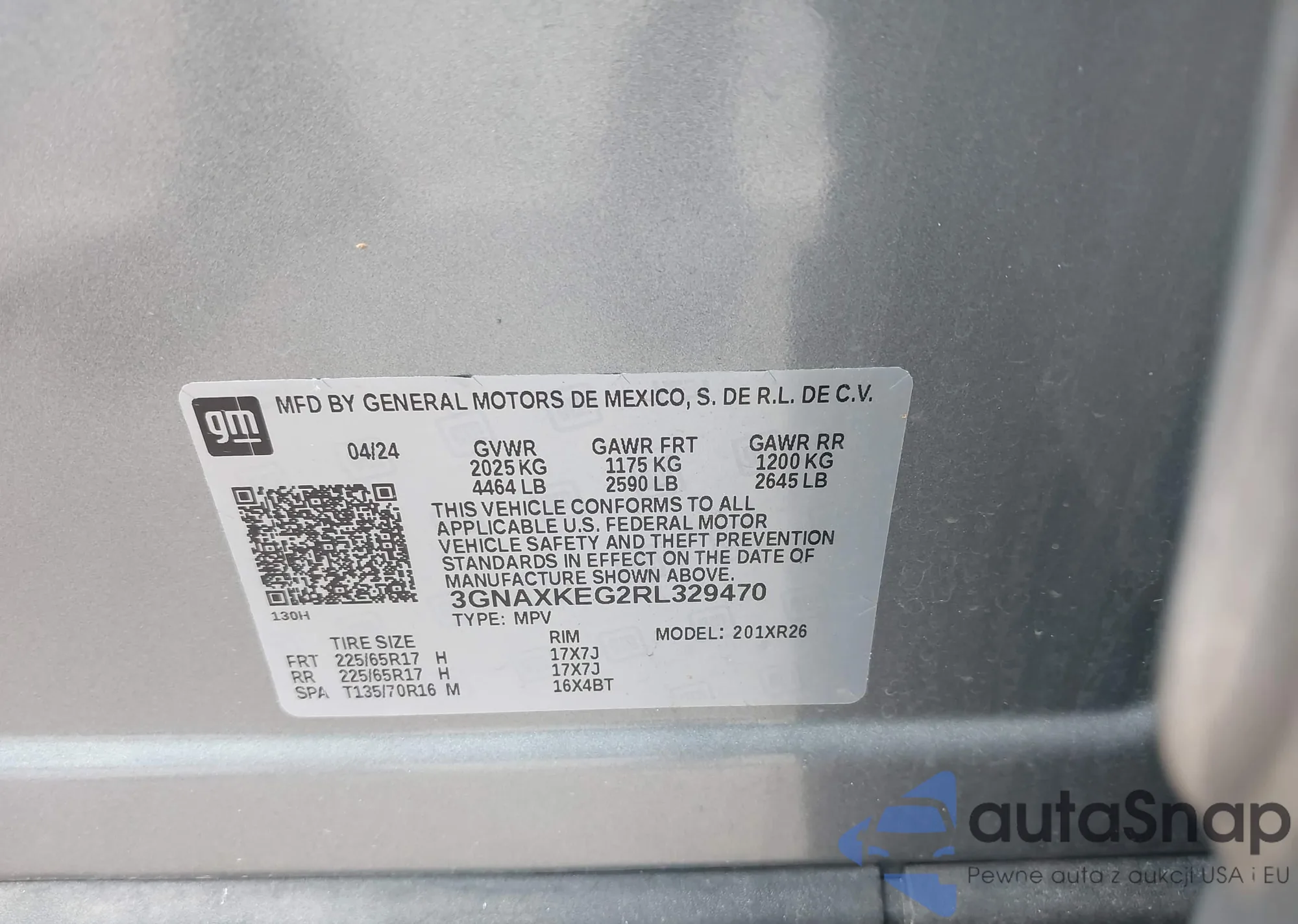 • VIN 3GNAXKEG2RL329470