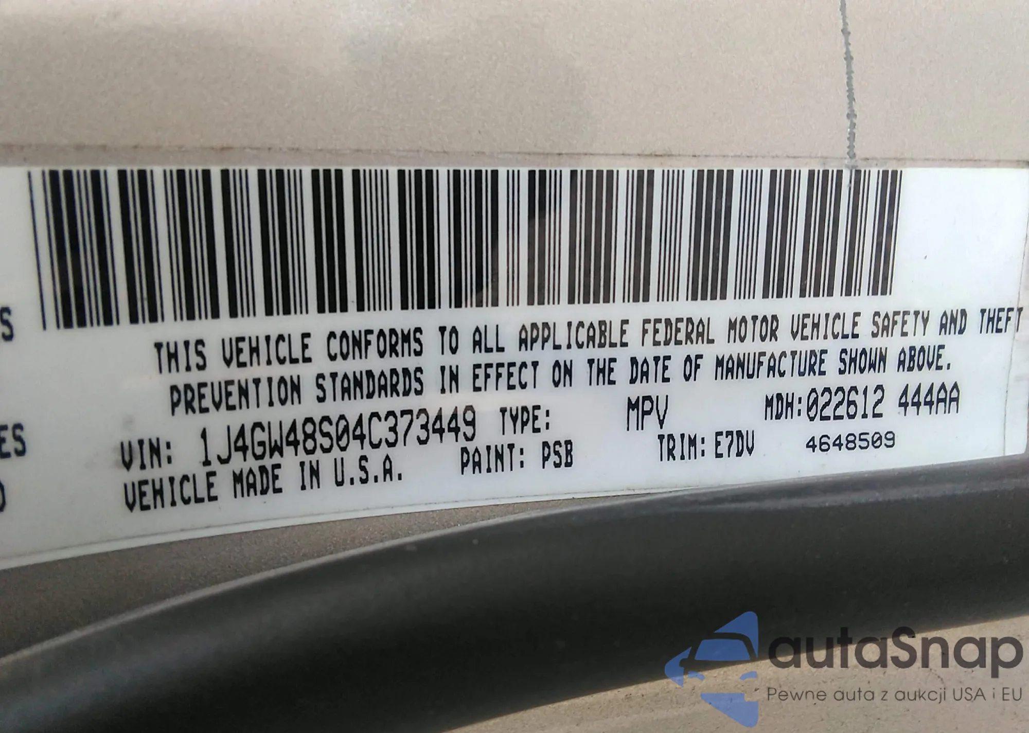 LOT: 38155016 VIN: 1J4GW48S04C373449