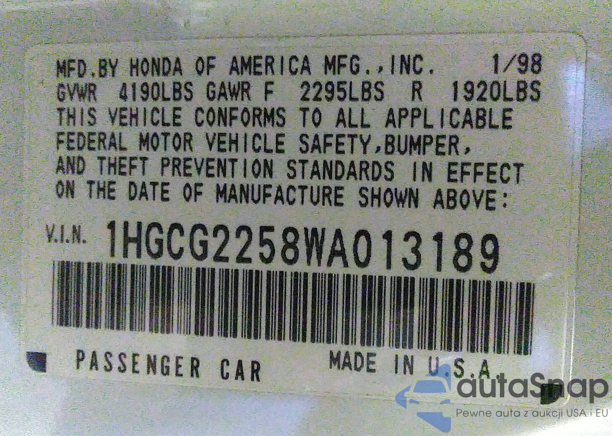 • VIN 1HGCG2258WA013189
