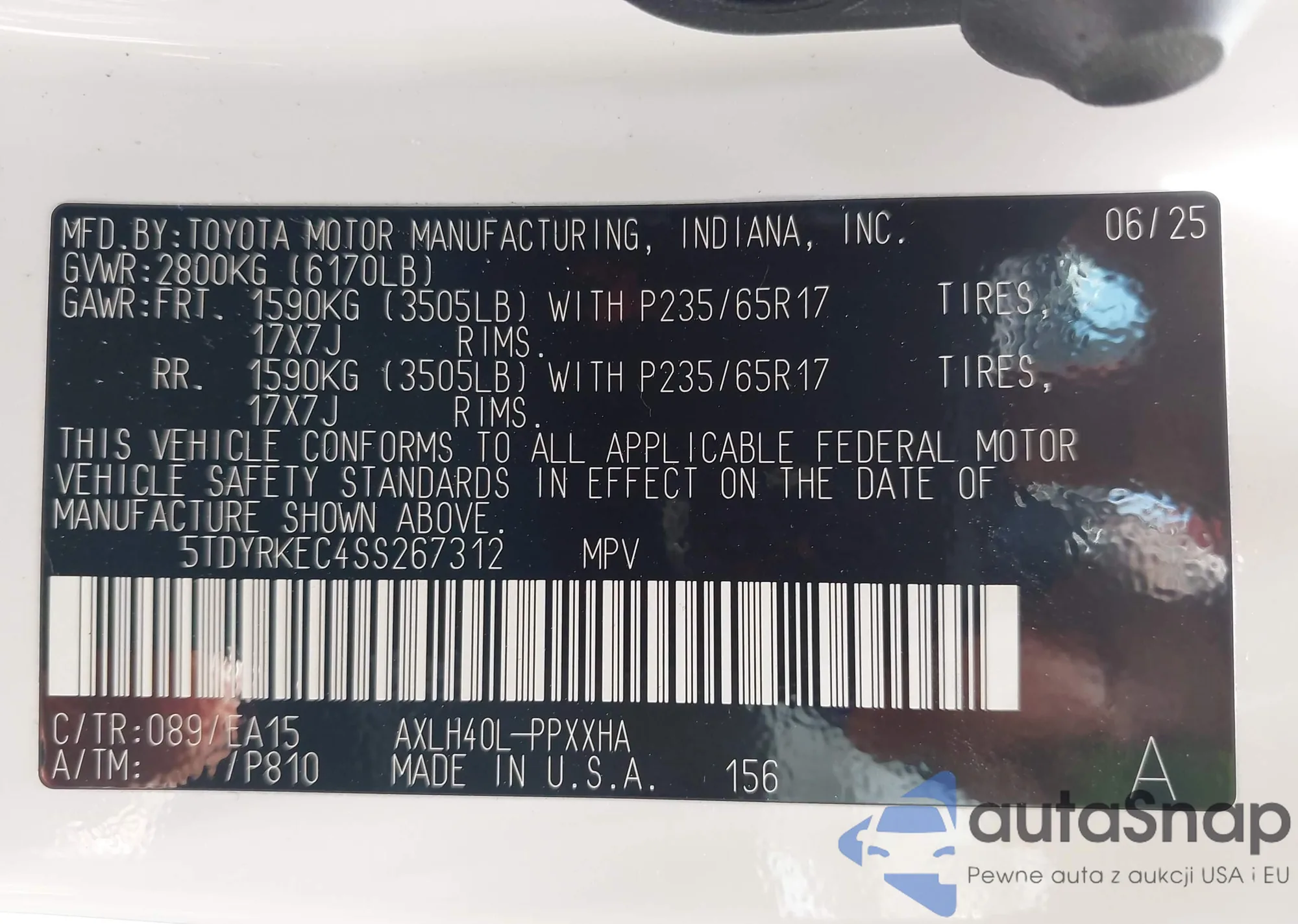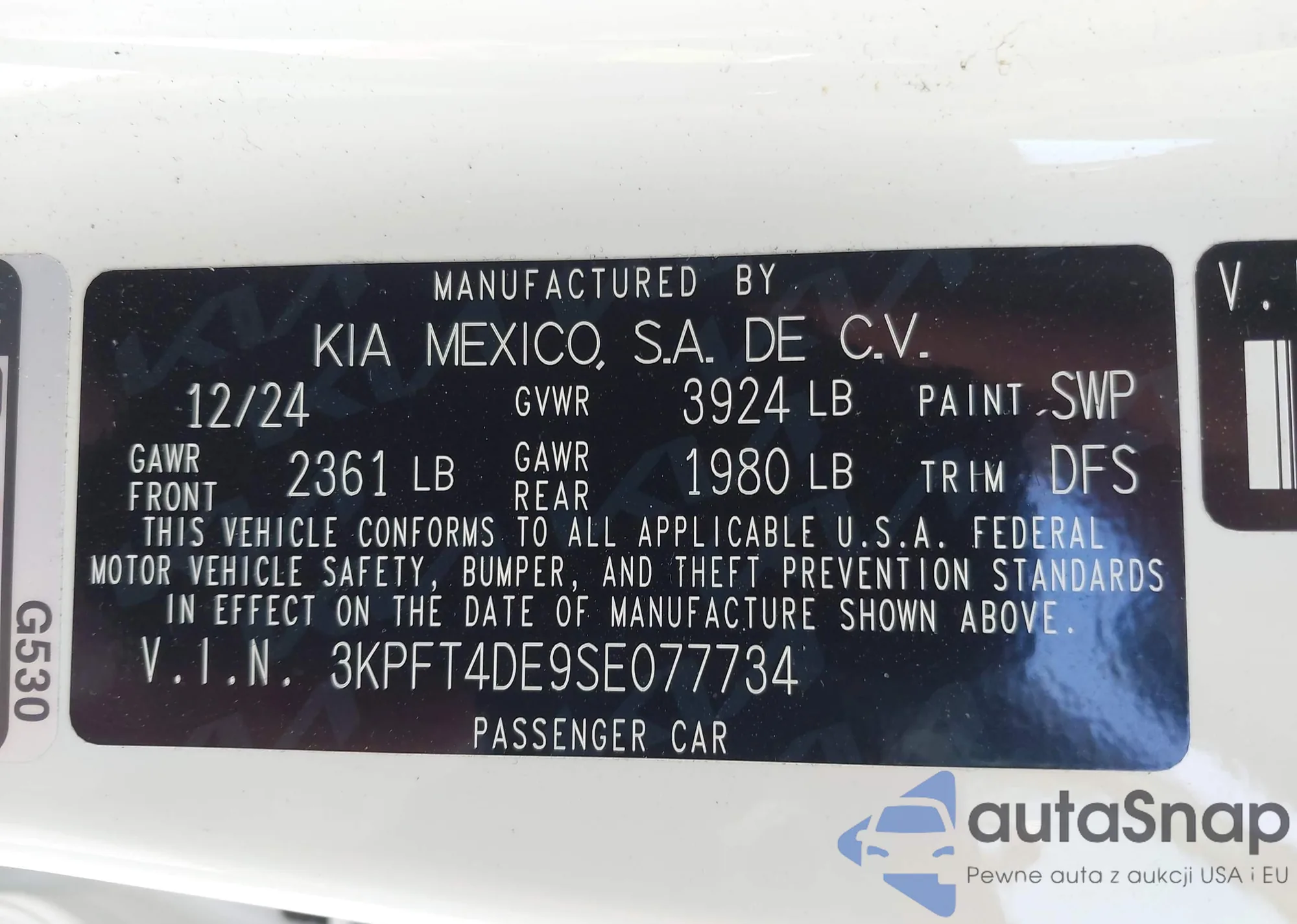 • VIN 3KPFT4DE9SE077734
