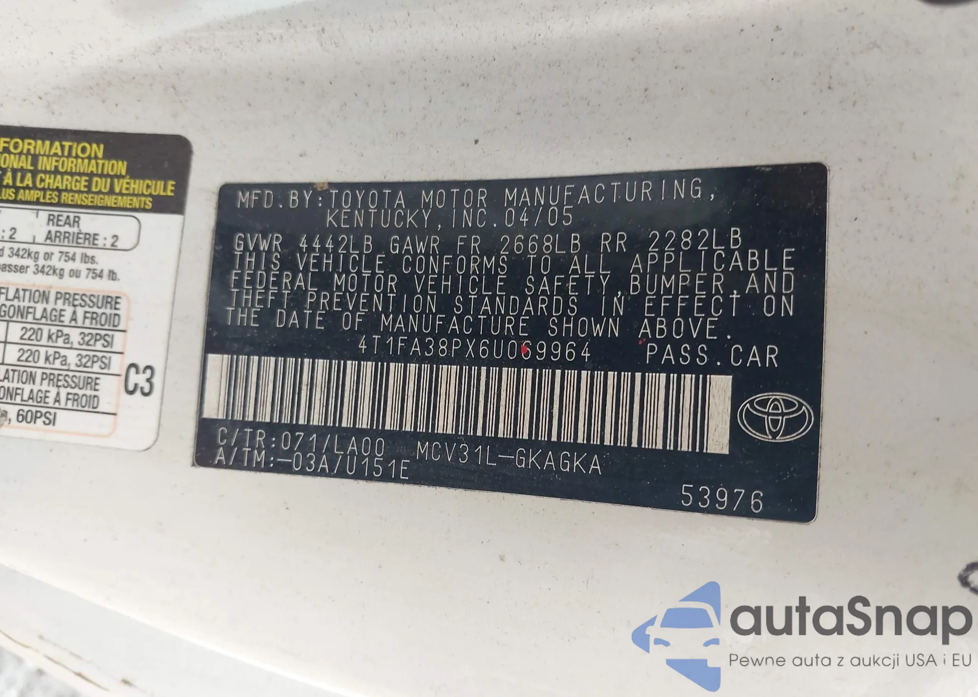 LOT: 37777048 VIN: 4T1BE30K63U699138