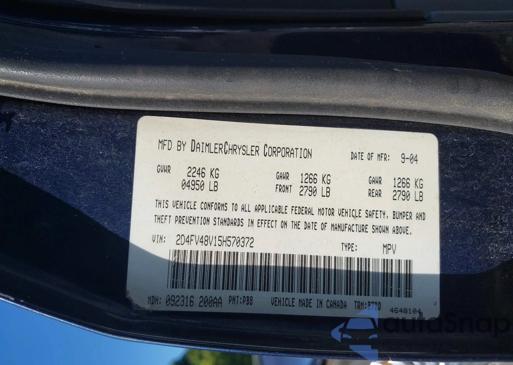 • VIN 2D4FV48V15H570372