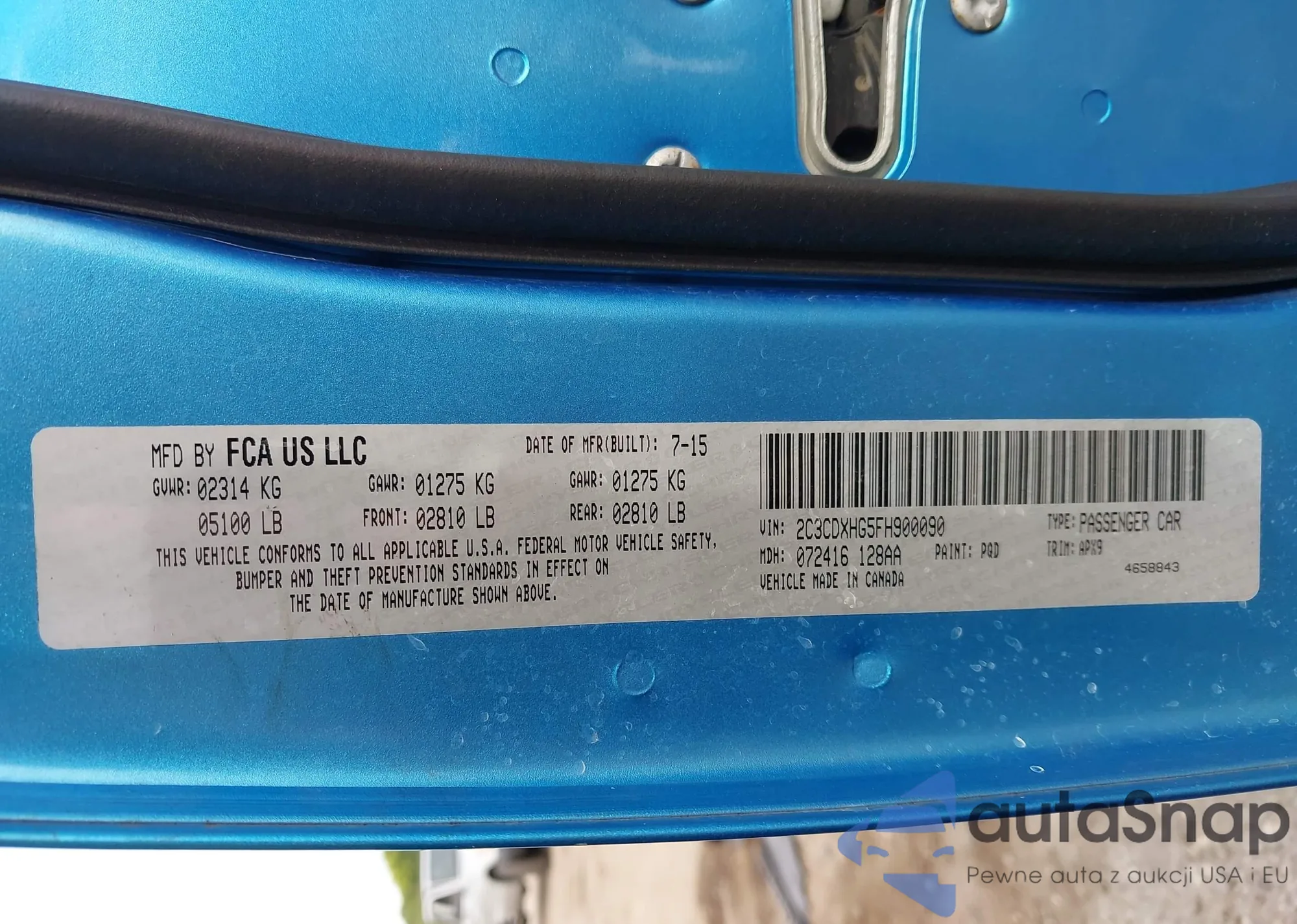• VIN 2C3CDXHG5FH900090