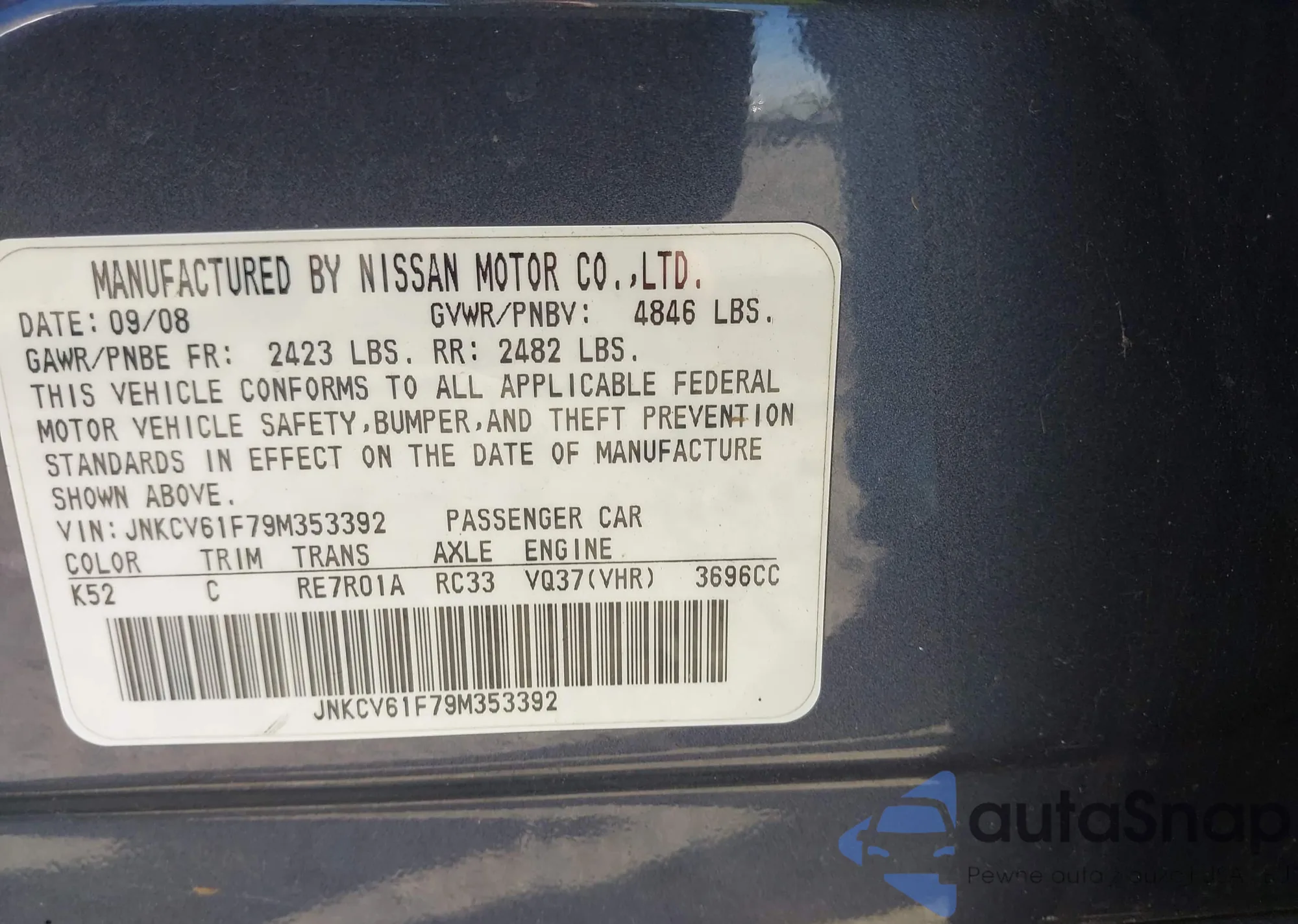 • VIN JN8AS5MV5DW108218