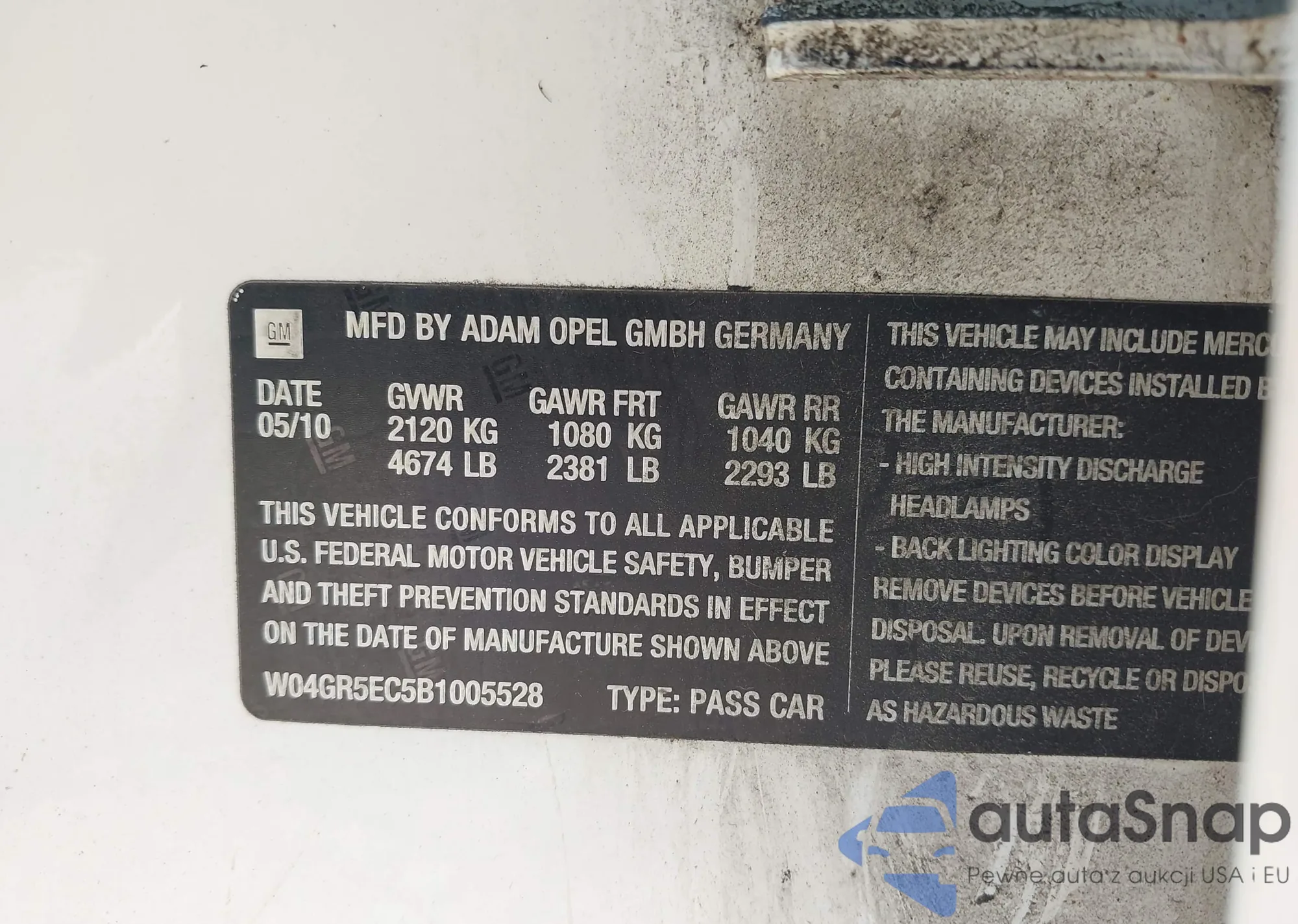 • VIN W04GR5EC5B1005528