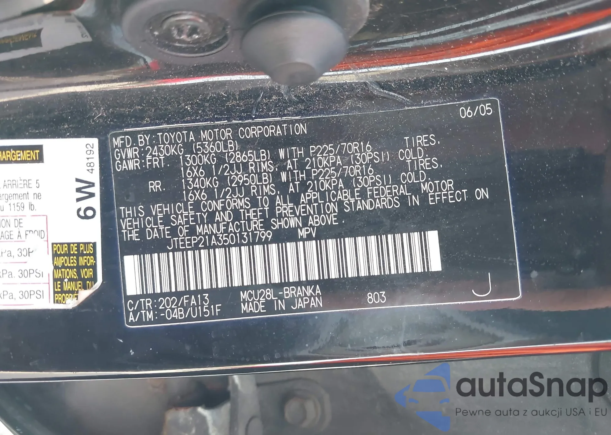 • VIN JTEEP21A350131799