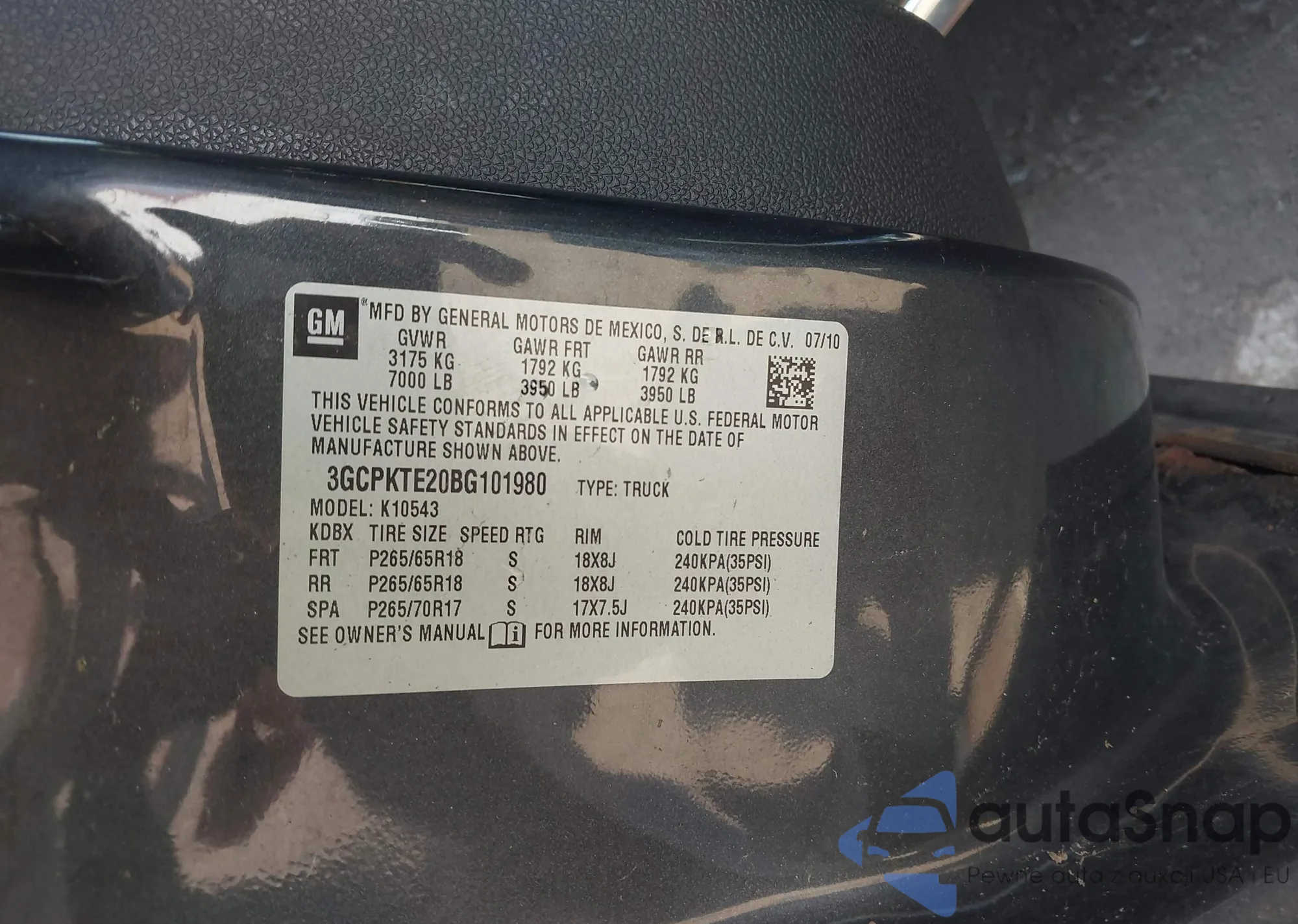 • VIN 3GCPKTE20BG101980