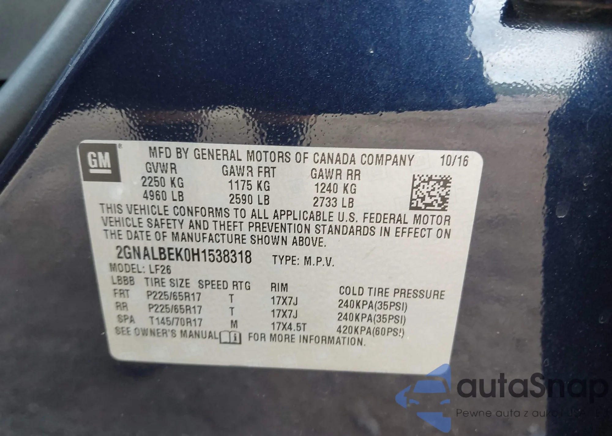 • VIN 2GNALBEK0H1538318