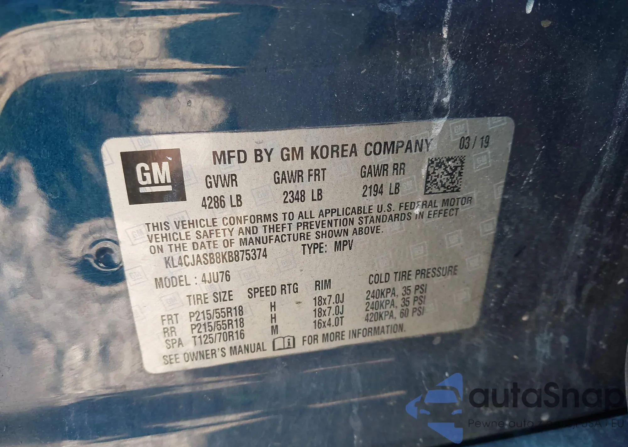 LOT: 43140142 VIN: 1GNDT13S872264116