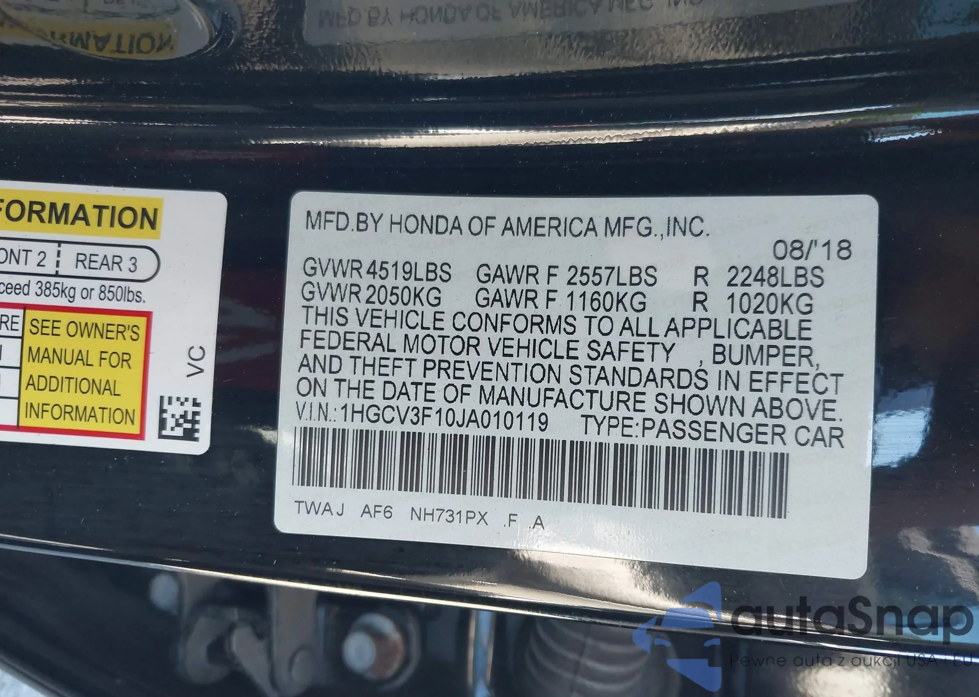 • VIN 1HGCV3F10JA010119
