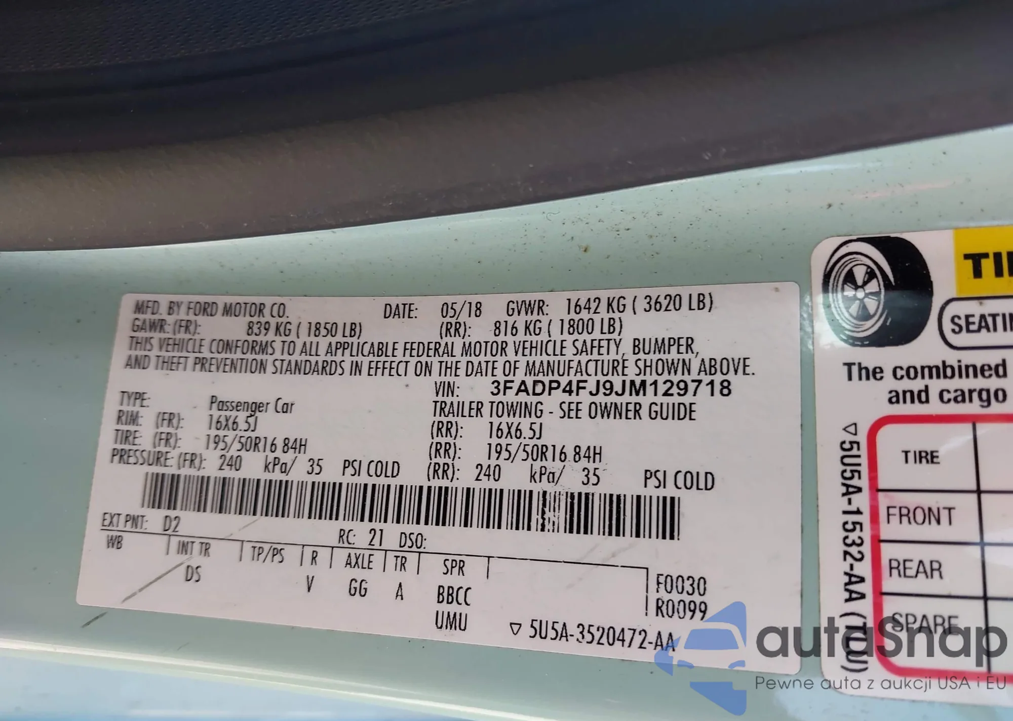 • VIN 3FADP4FJ9JM129718