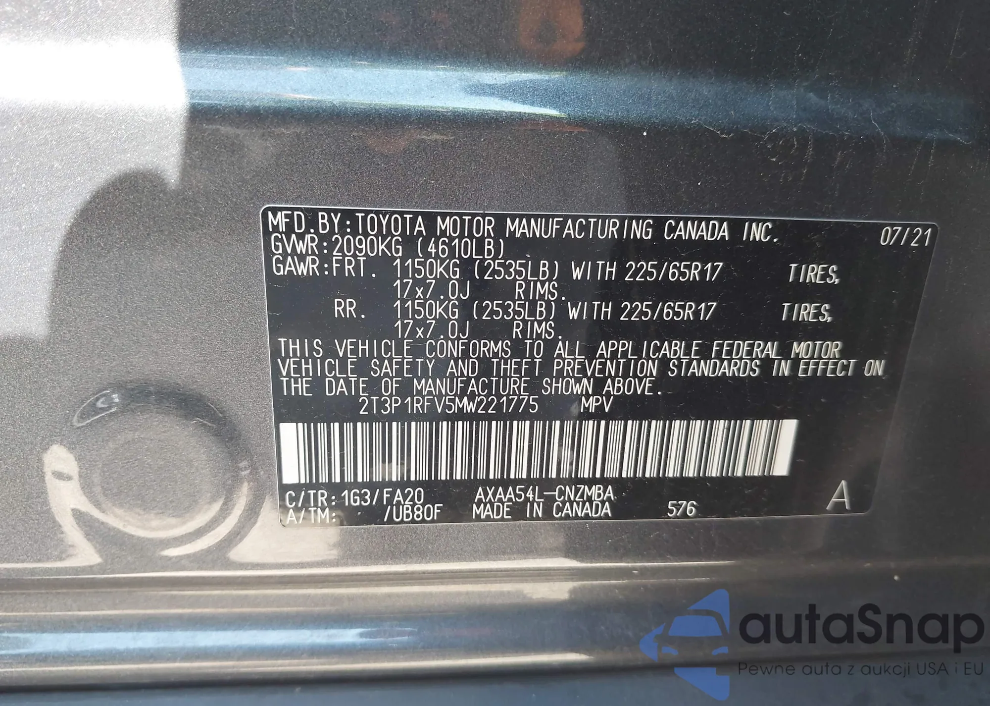 • VIN 2T3P1RFV5MW221775