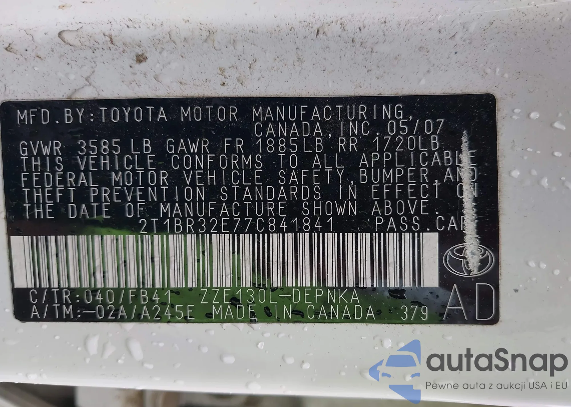 • VIN 2T1BURHE7EC089872
