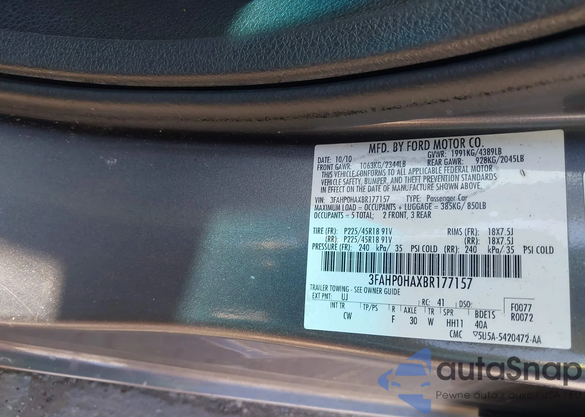 • VIN 3FAHP0HAXBR177157