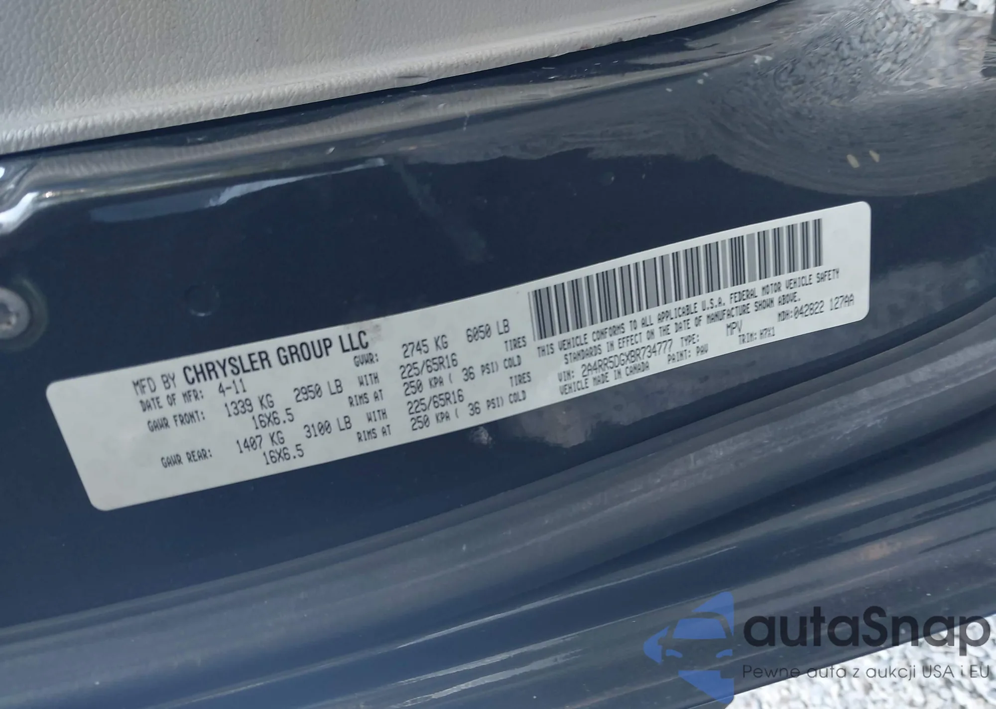 • VIN 2A4RR5DGXBR734777