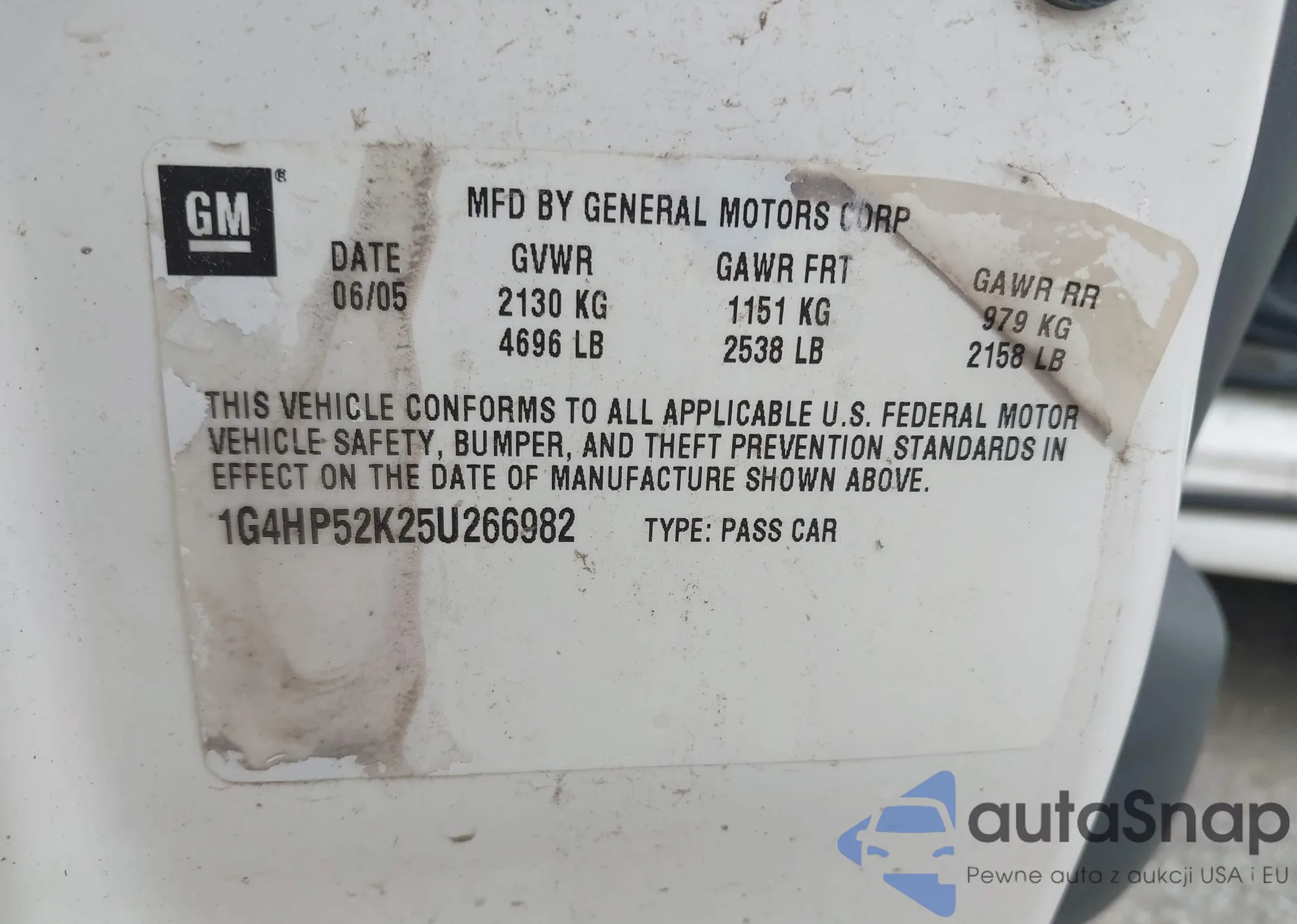 LOT: 42164936 VIN: 1G4HP52K25U266982